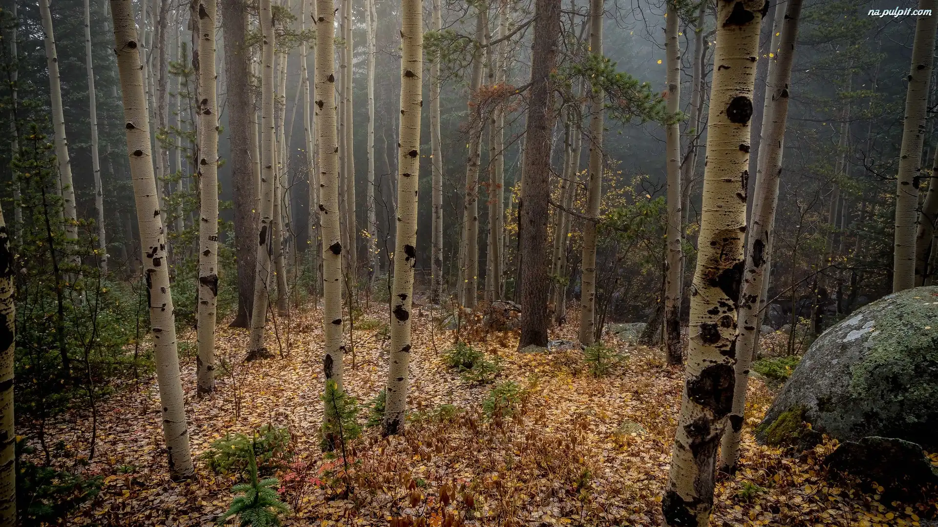 Drzewa, Liście, Kamień, Topole osikowe, Las, Opadłe Na Pulpit