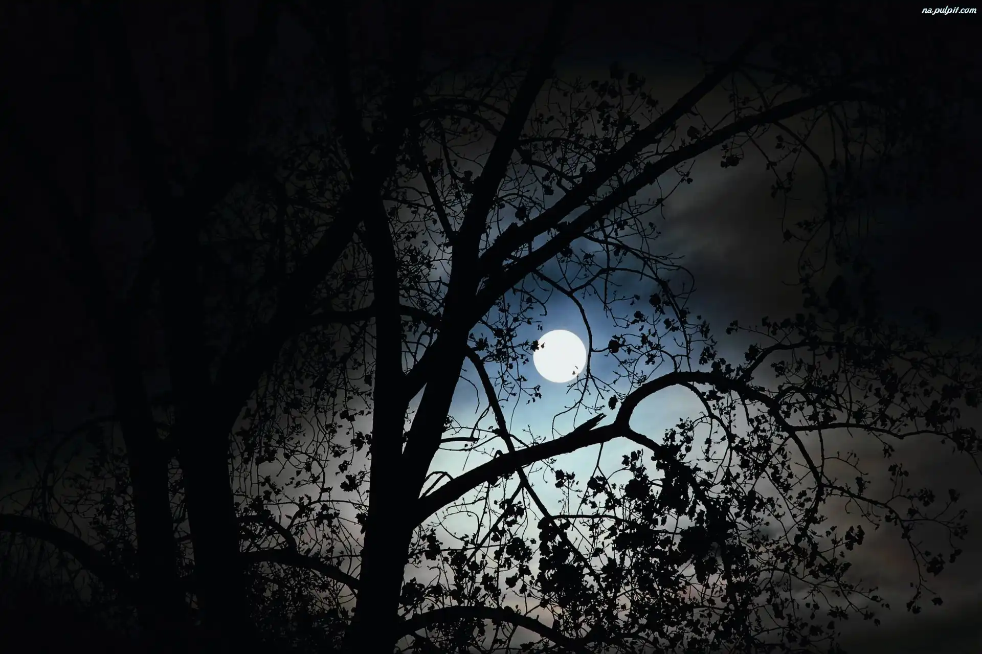 Liście, Pełnia, Drzewo, Księżyca Na Pulpit