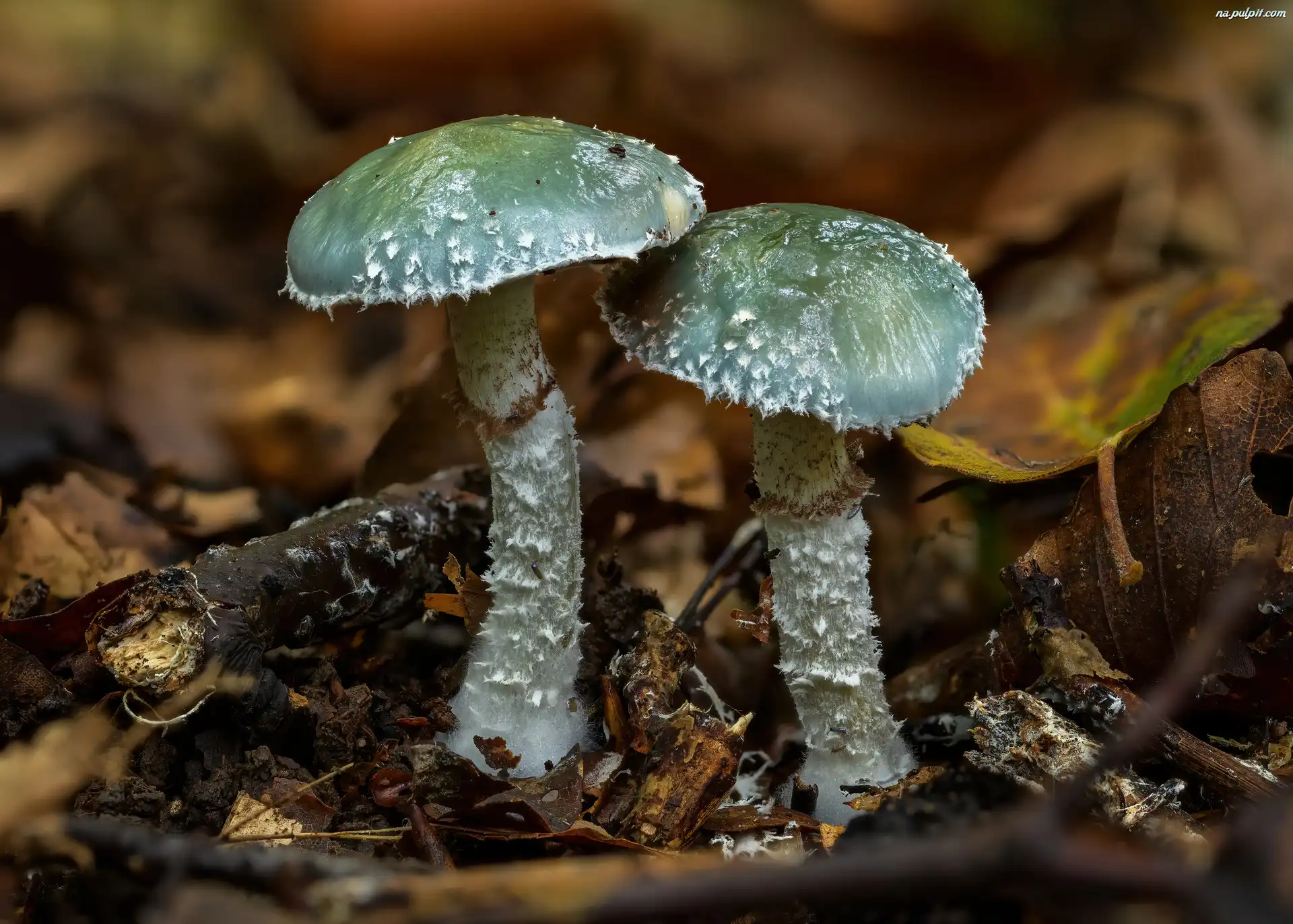 Liście, Pierścieniaki grynszpanowe, Grzyby, Dwa, Patyki