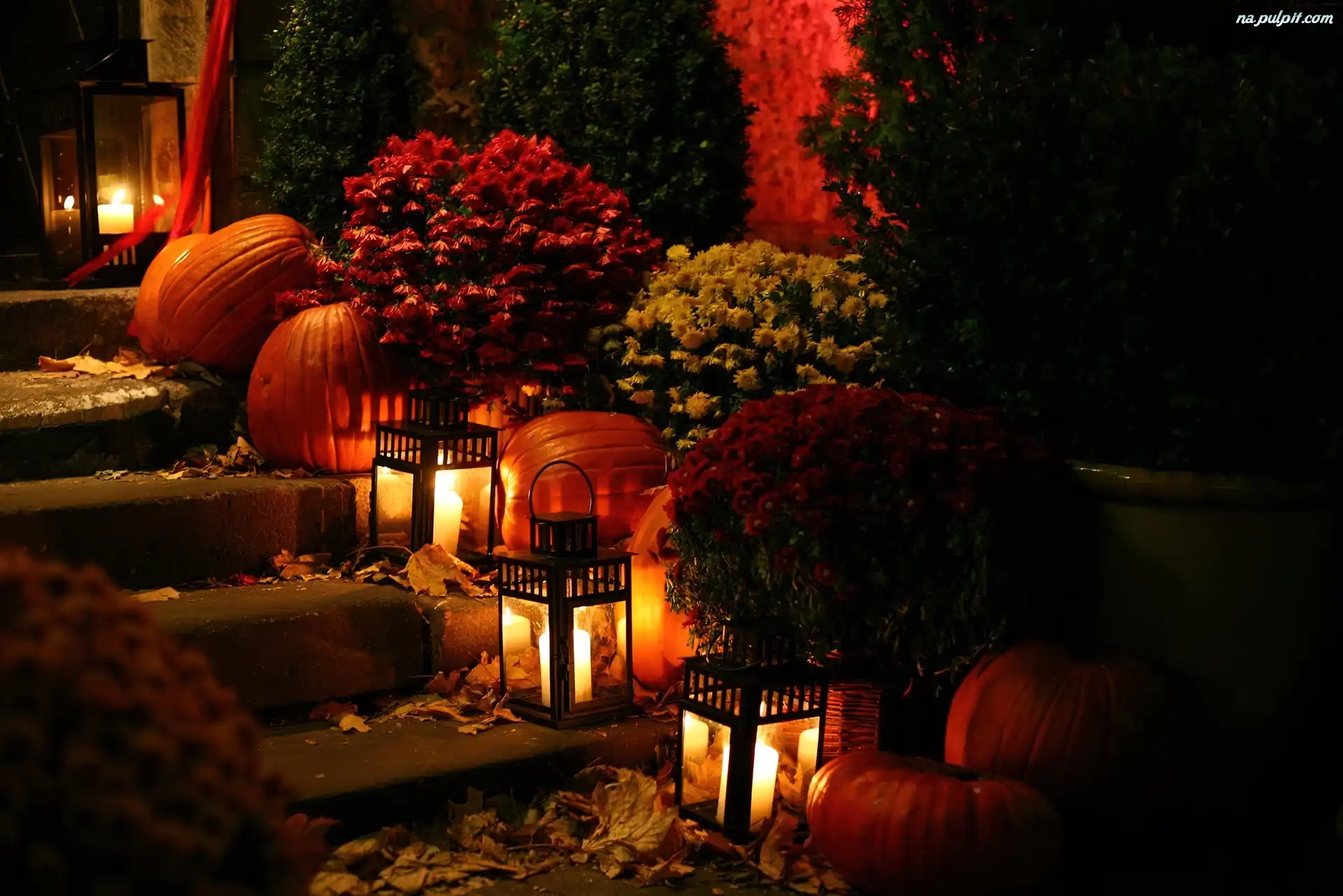 Liście, Lampiony, Schody, Dynie, Bukiety