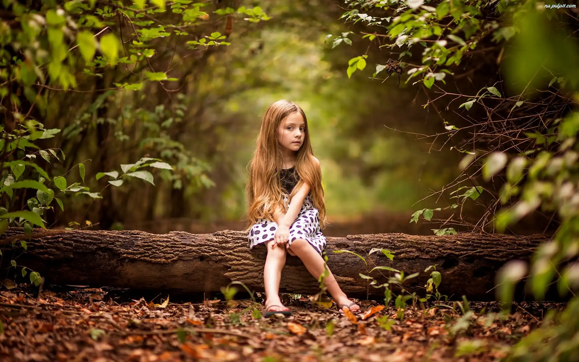 Liście, Las, Dziewczynka, Dziecko, Drzewo