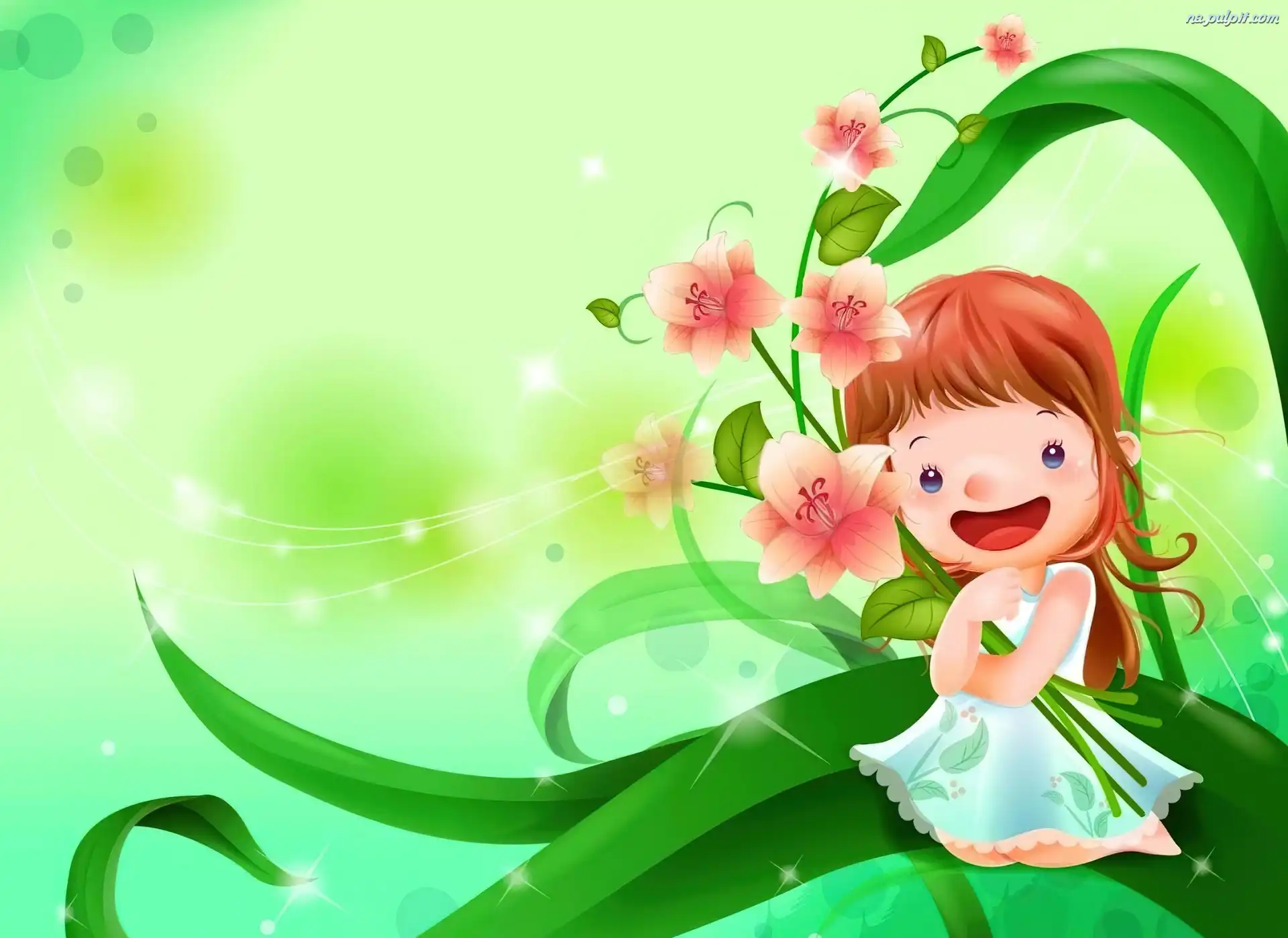 Liście, Różowe, Dziewczynka, Kwiaty Na Pulpit