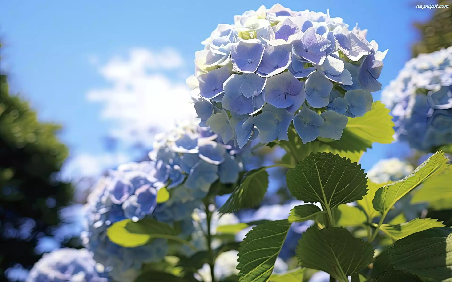 Niebo, Kwiaty, Hortensje, Liście, Niebieskie, Grafika Na Pulpit