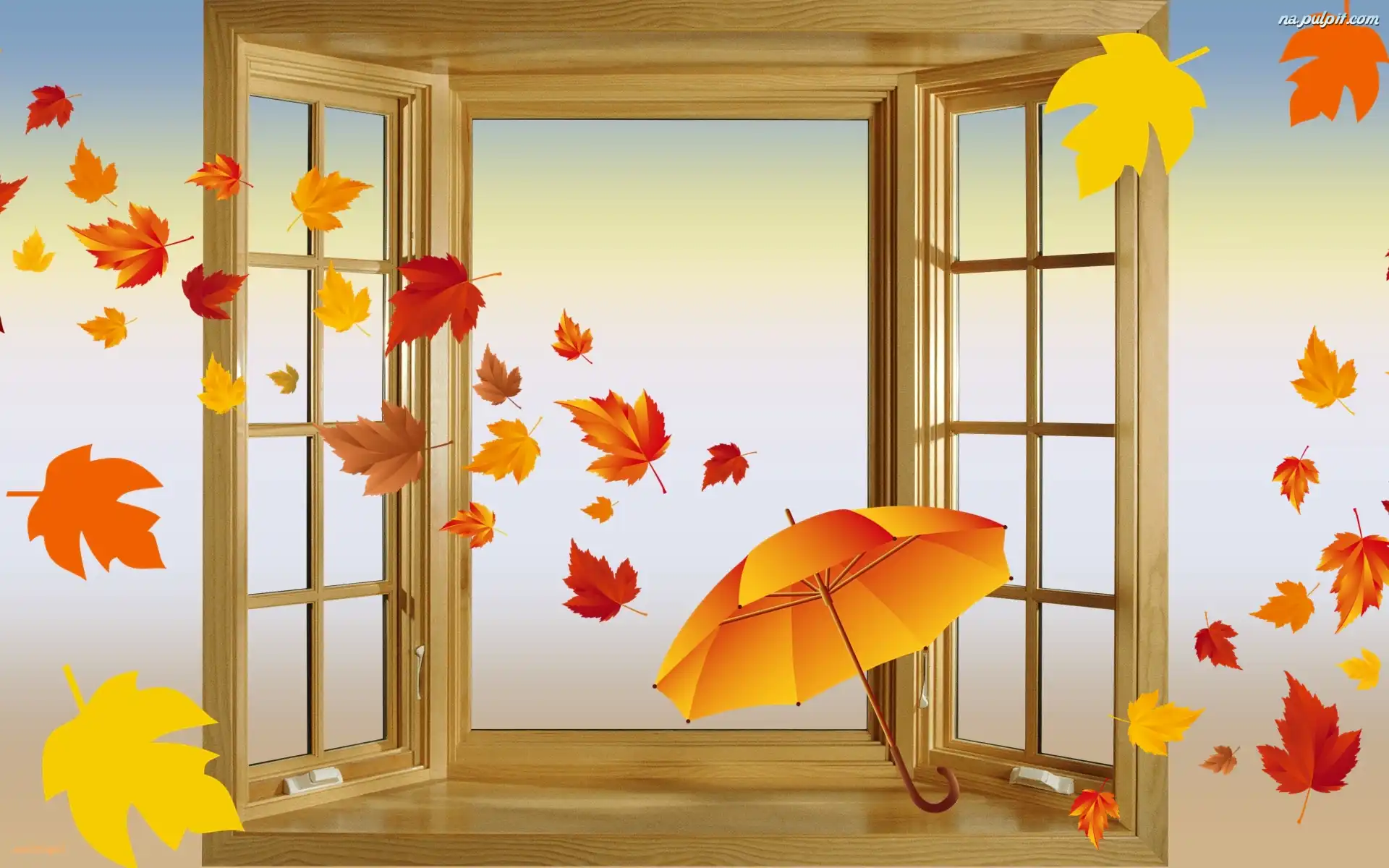 Liście, Okno, Grafika, Parasol