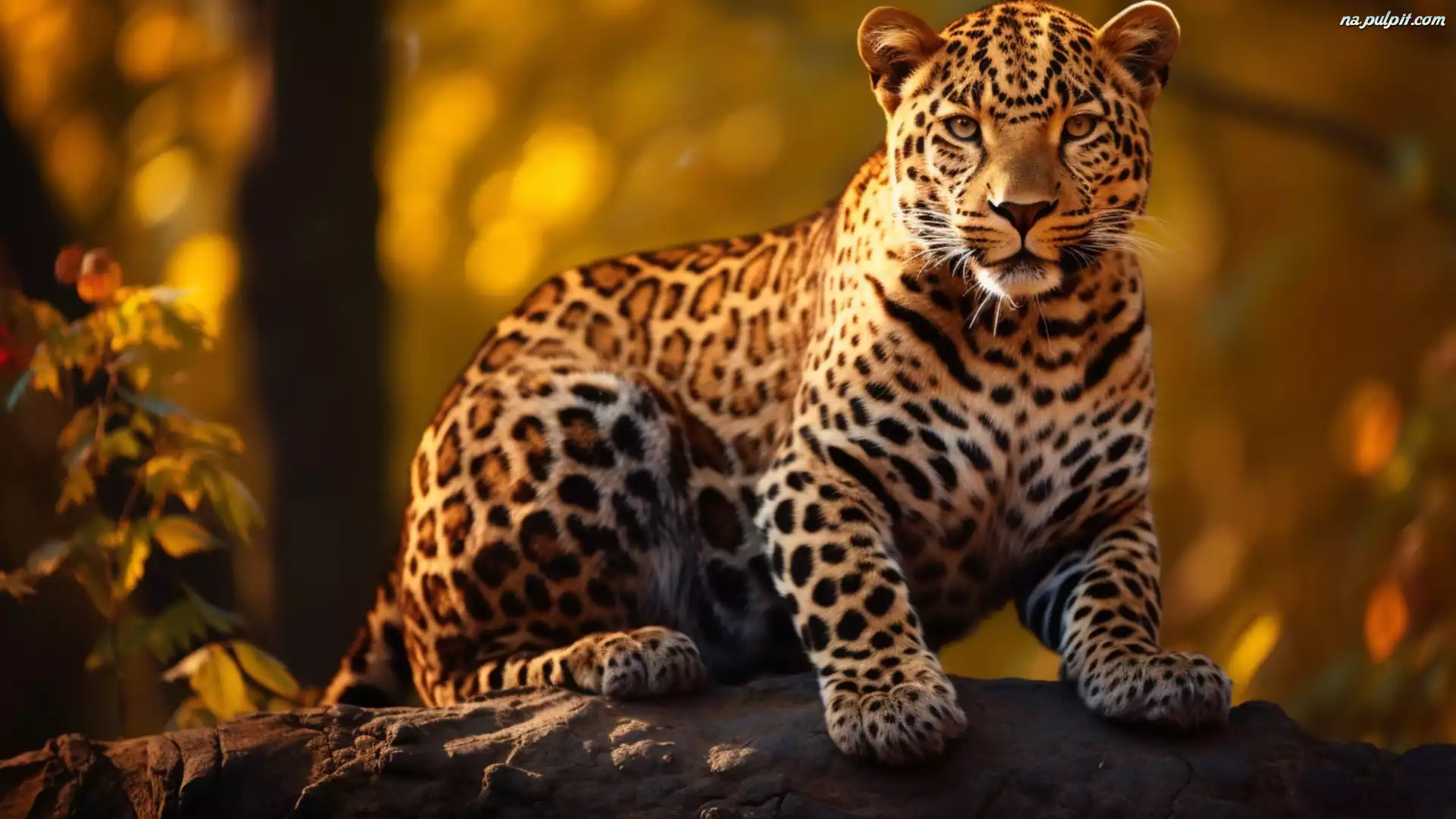 Jaguar, Siedzący, Spojrzenie, Liście Na Pulpit