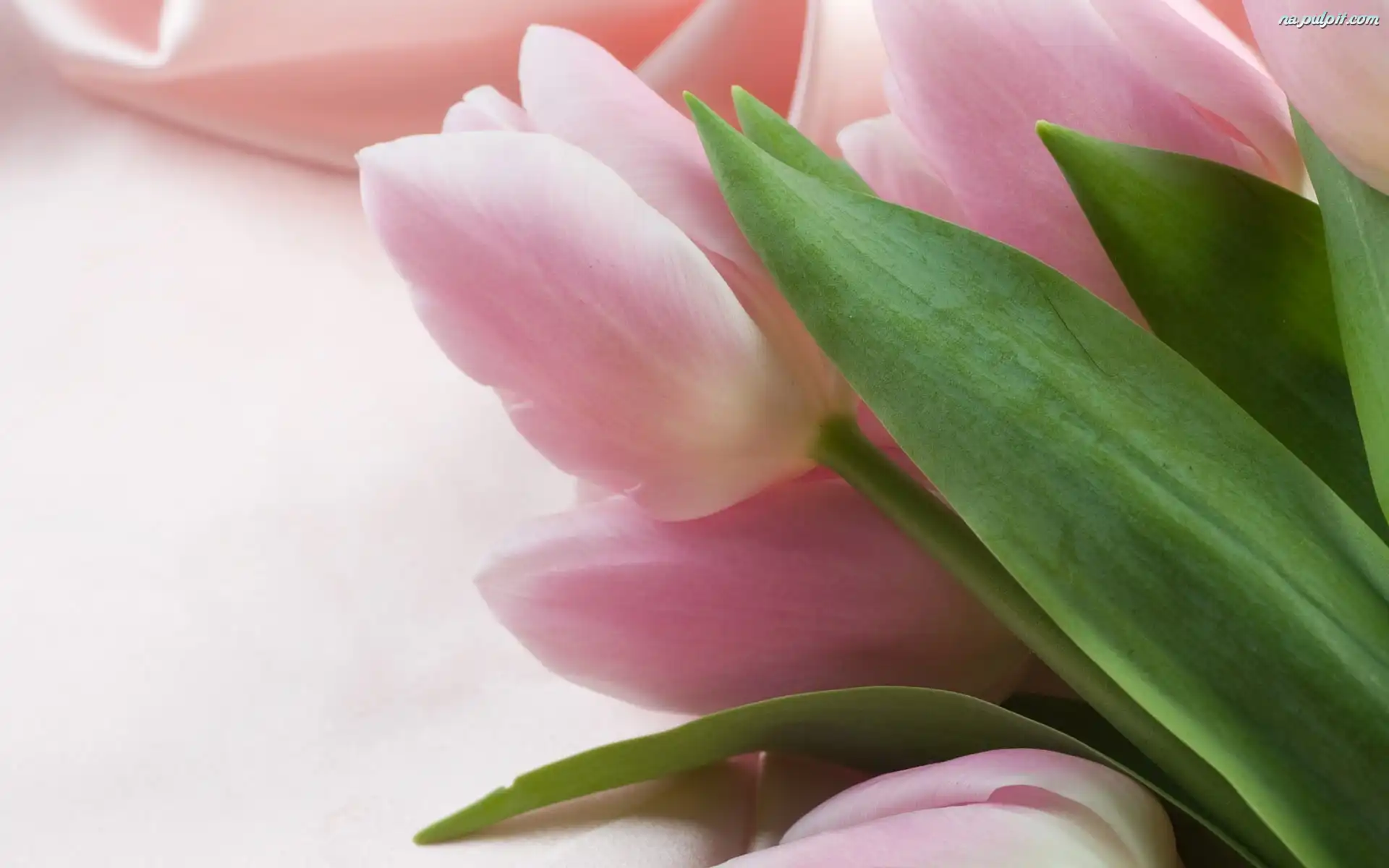 Liście, Tulipany, Jasnoróżowe, Zielone Na Pulpit