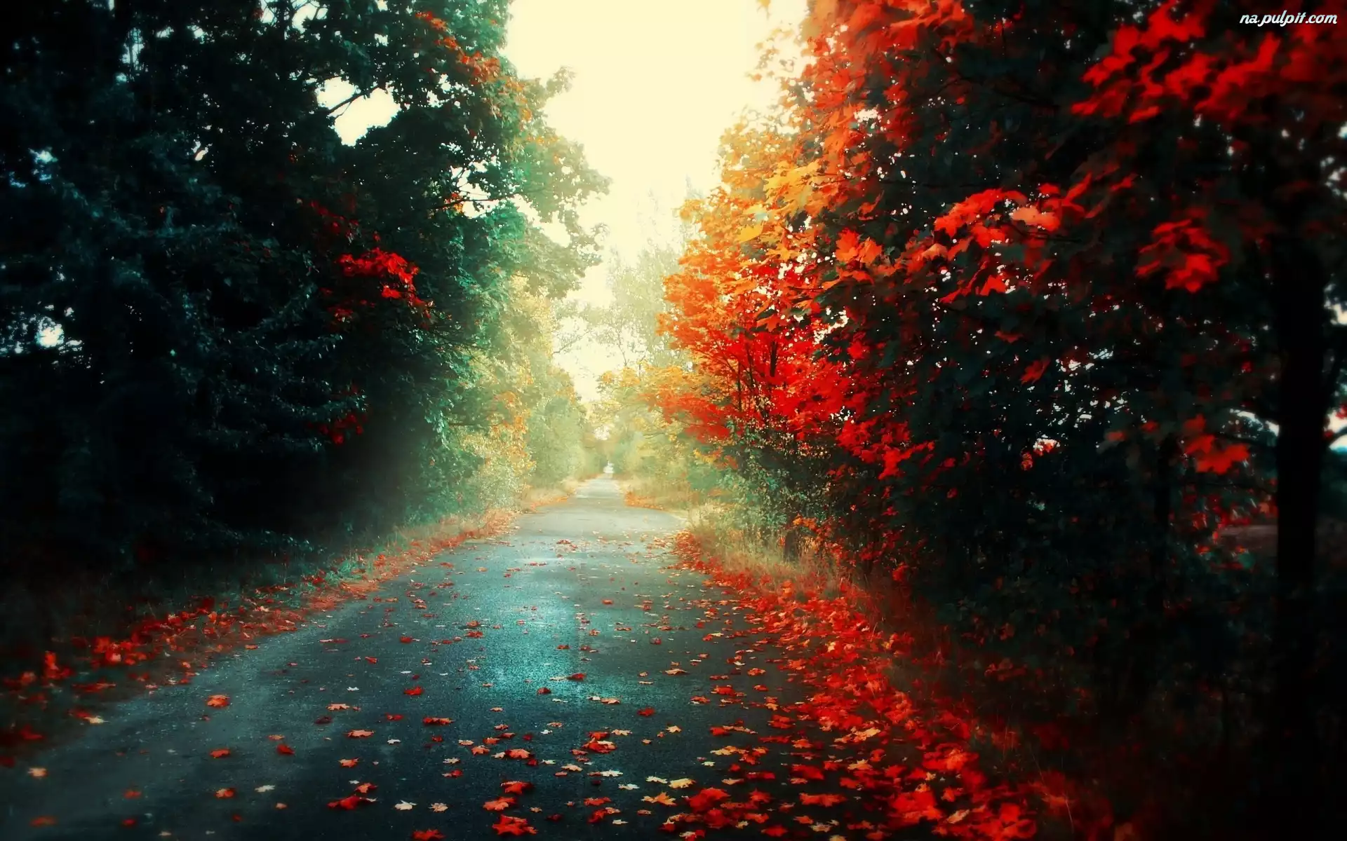 Liście, Droga, Jesień, Czerwone Na Pulpit