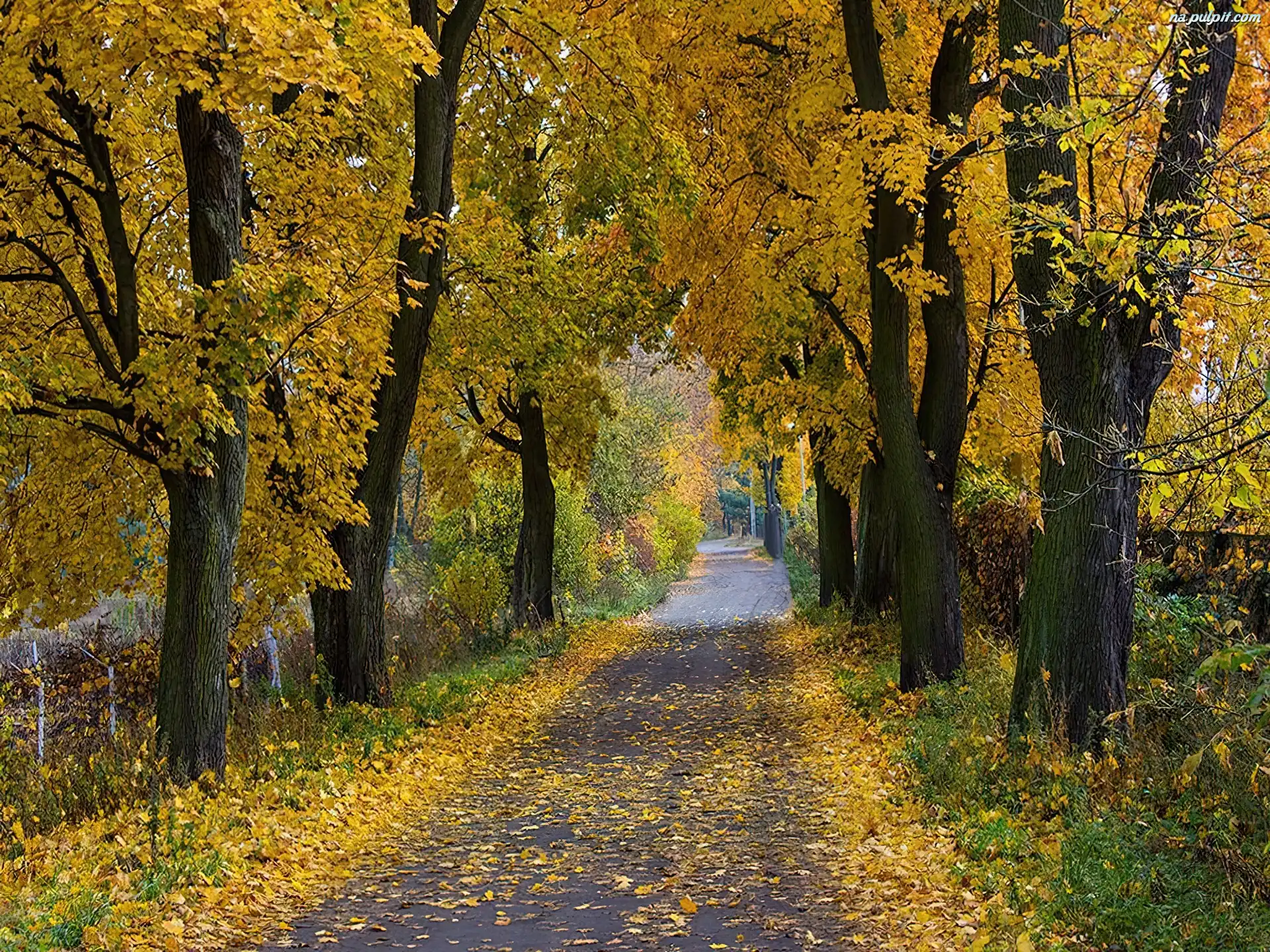 Liście, Droga, Jesień, Drzewa Na Pulpit