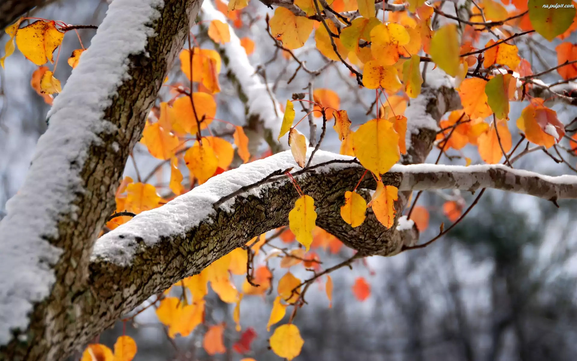 Śnieg, Jesień, Drzewo, Liście, Zima Na Pulpit