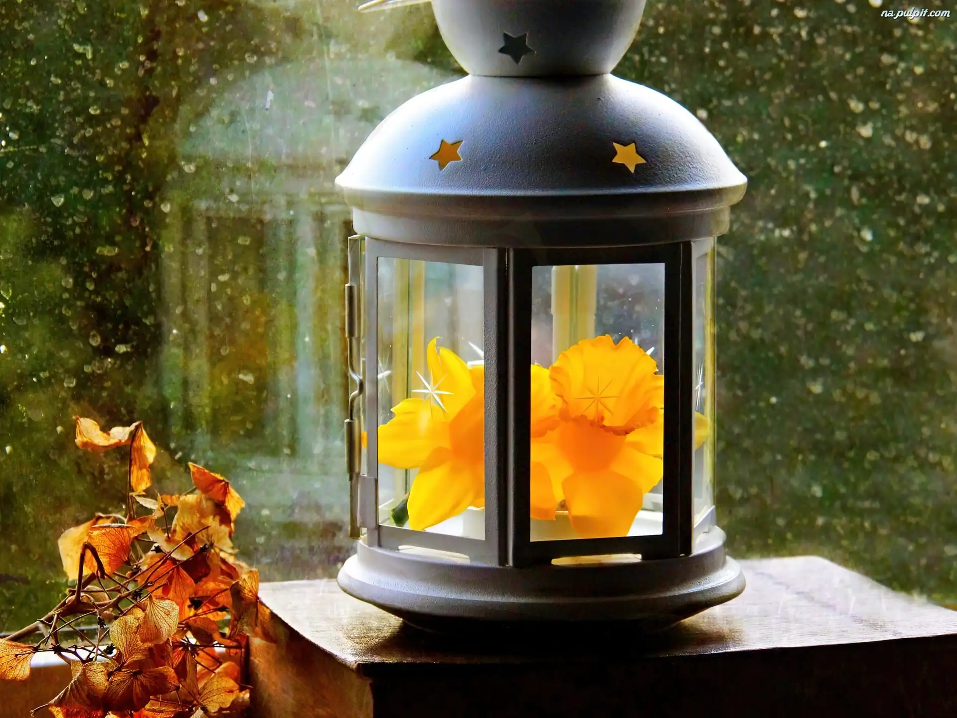 Liście, Lampion, Jesień, Żonkile Na Pulpit