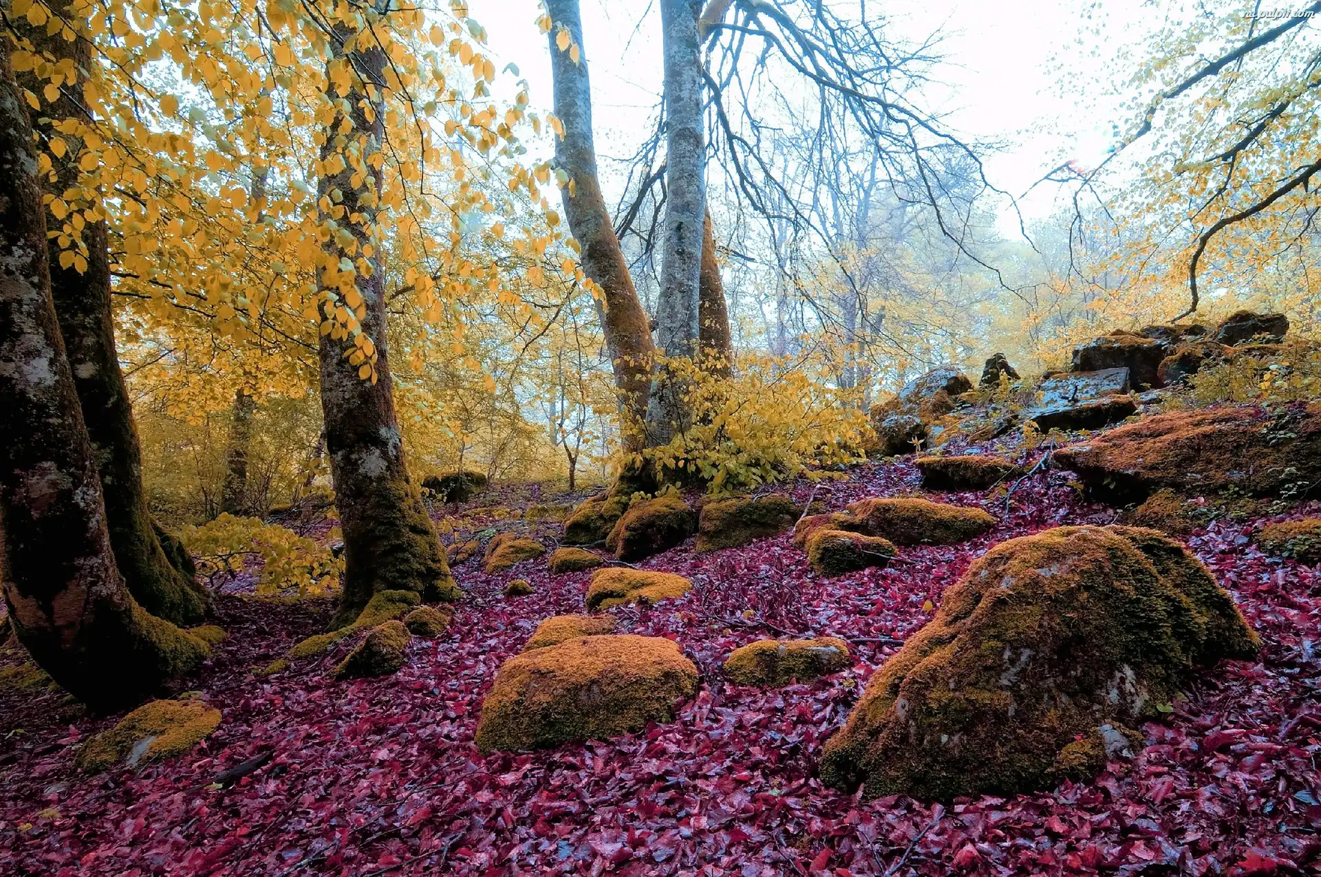 Liście, Omszone, Las, Jesień, Kamienie Na Pulpit