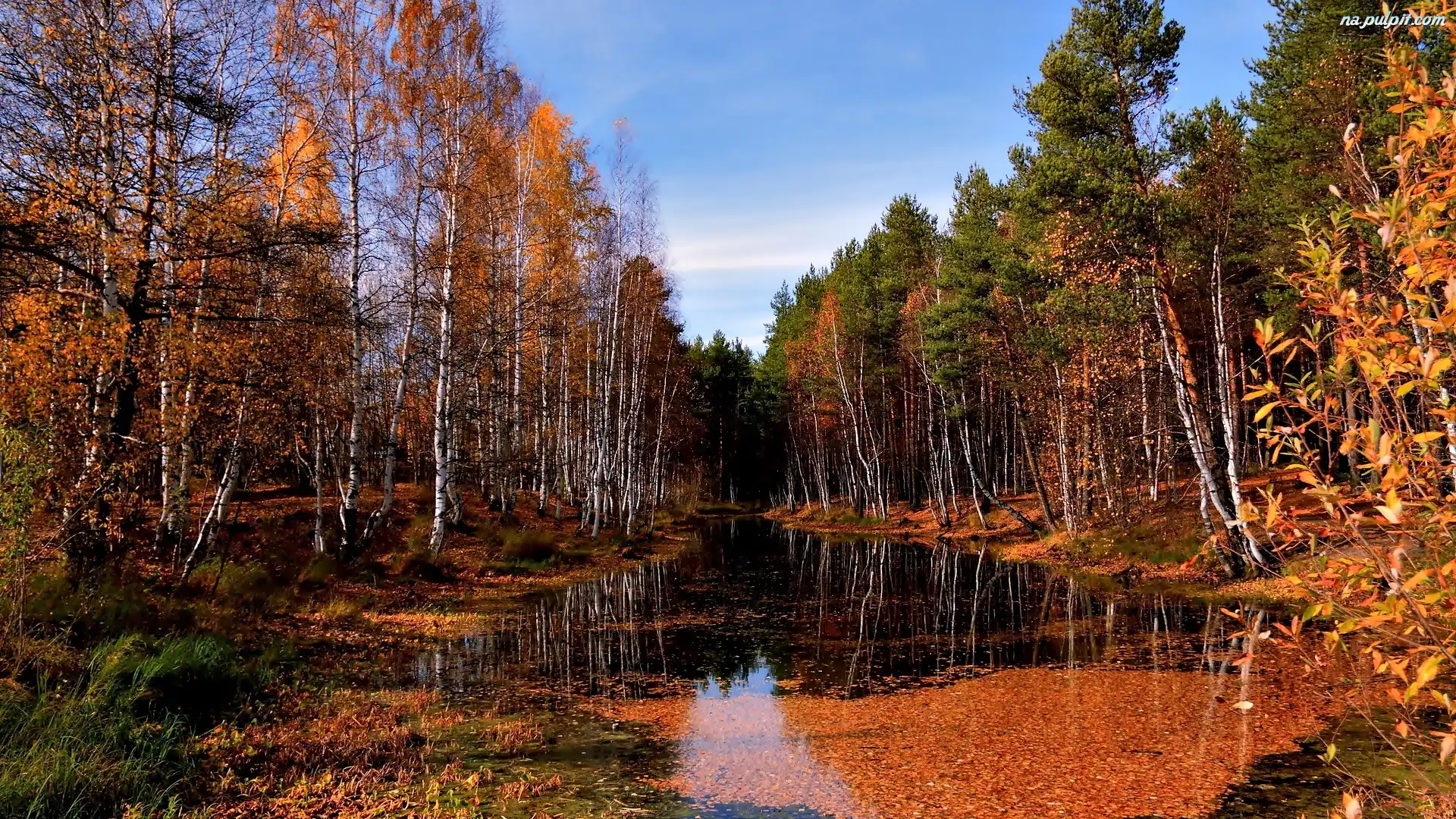 Liście, Las, Jesień, Woda Na Pulpit