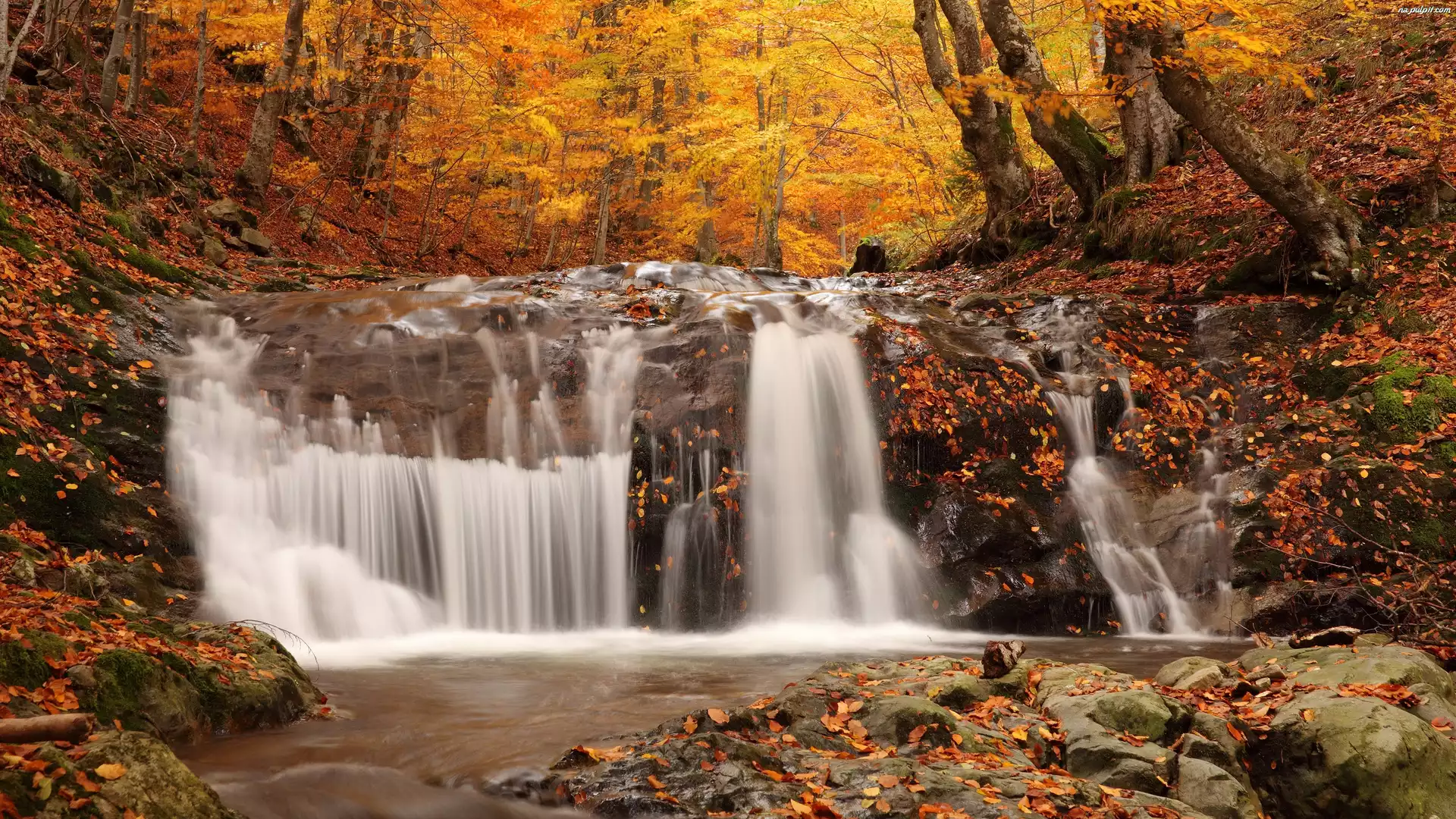 Liście, Las, Jesień, Wodospad Na Pulpit