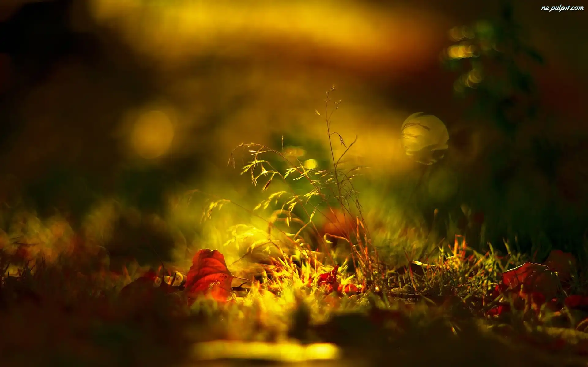 Liście, Tło, Makro, Trawa, Jesień, Rozmyte