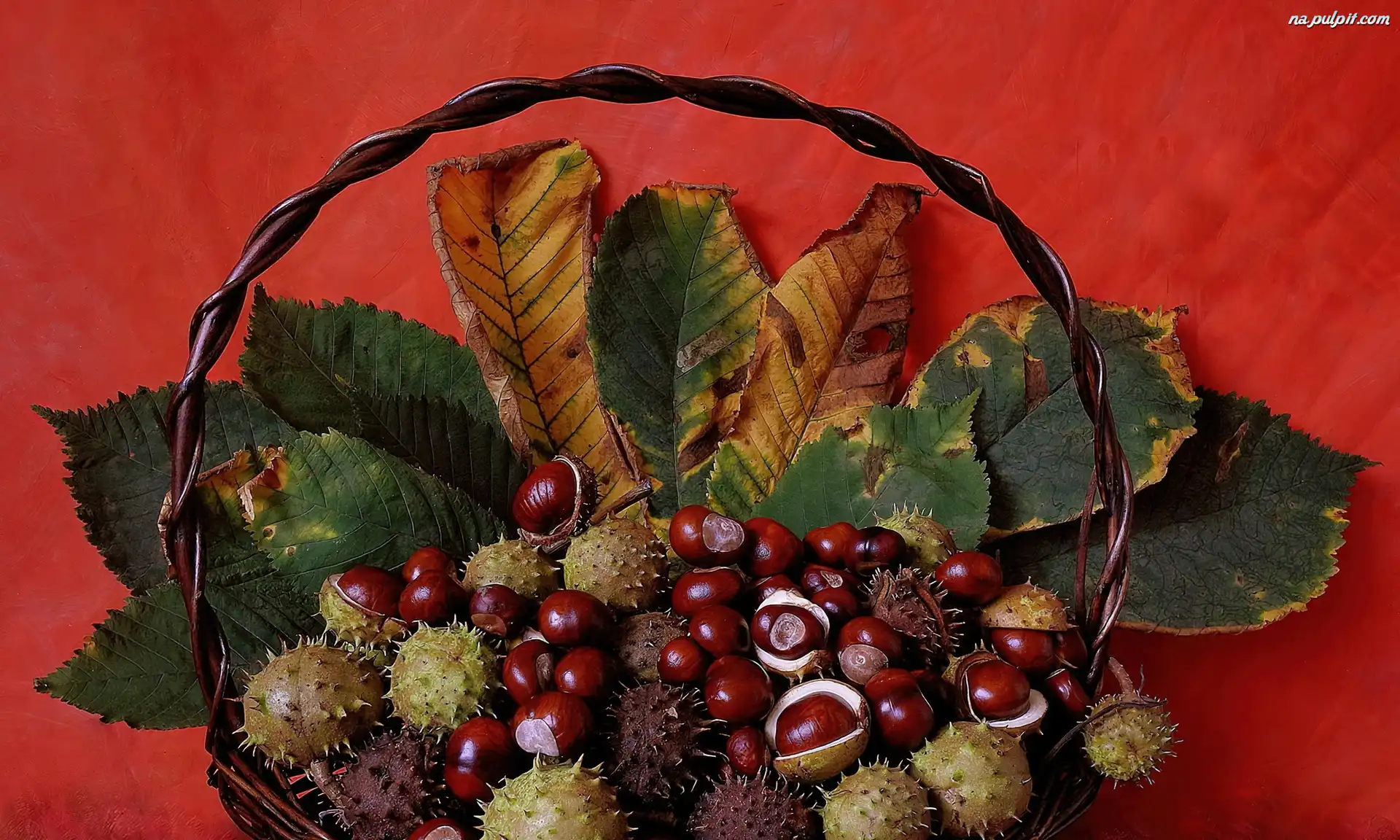 Liście, Kosz, Wiklinowy, Jesień, Kasztany Na Pulpit