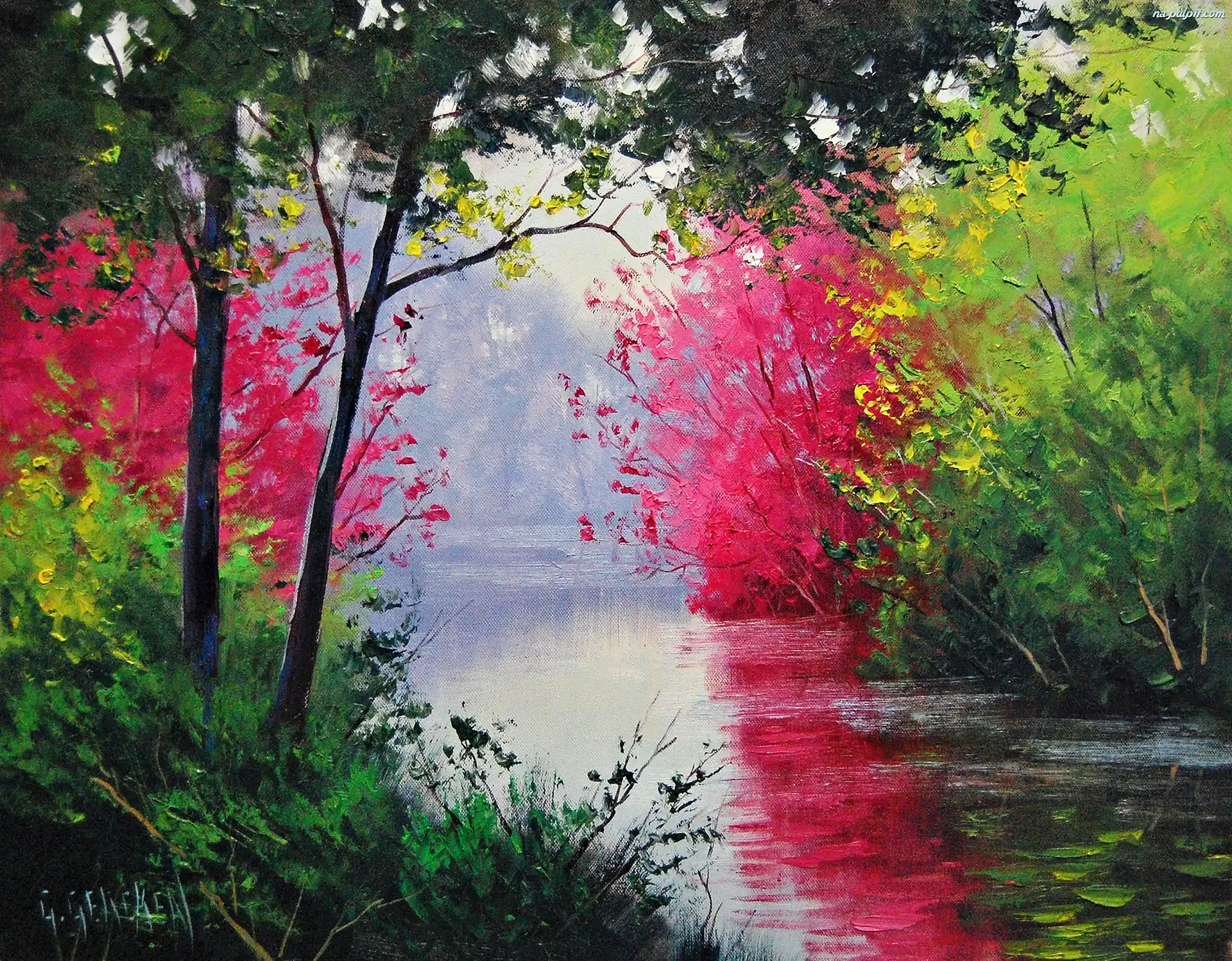 Liście, Drzewa, Jezioro, Czerwone Na Pulpit