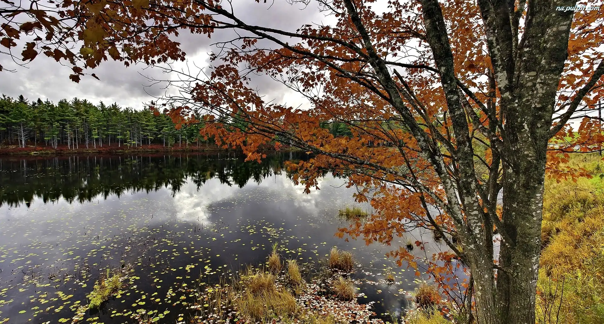 Liście, Sosnowy, Las, Jezioro, Drzewo Na Pulpit