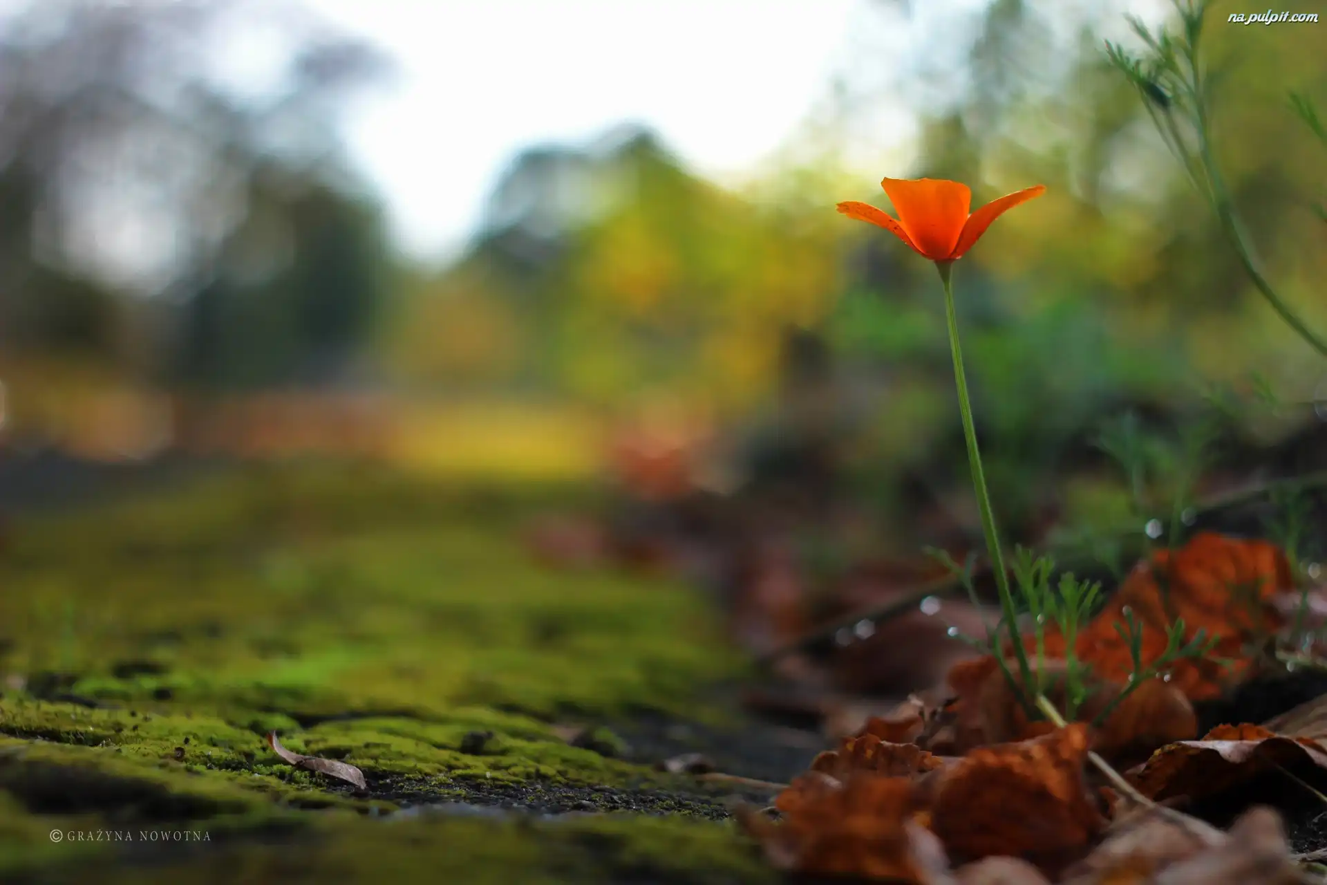 Maczek kalifornijski, Suche, Liście, Kwiat, Pozłotka kalifornijska, Mech Na Pulpit