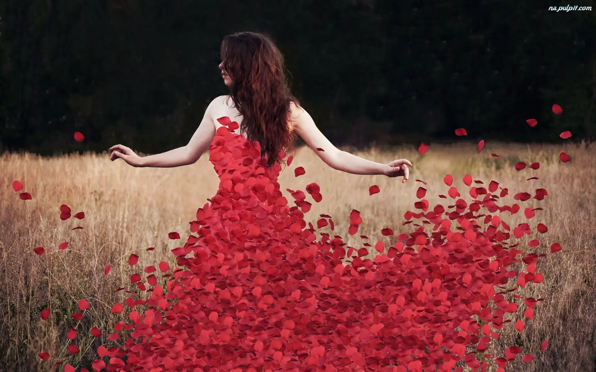 Liście, Trawa, Łąka, Kobieta, Jesienne
