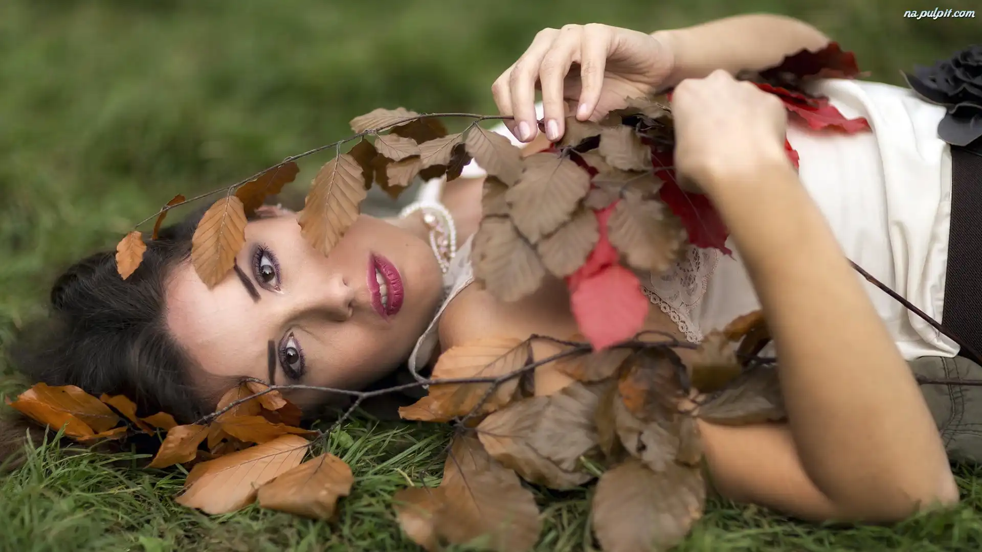Liście, Ciemne, Kobieta, Oczy Na Pulpit