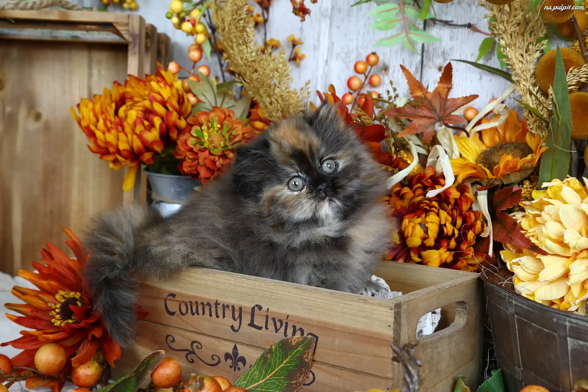 Liście, Skrzynka, Kotek, Kwiaty Na Pulpit