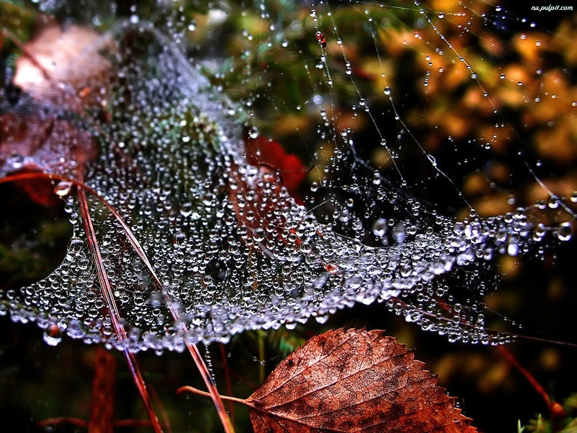 Liście, Deszczu, Jesień, Pajęczyna, Krzew, Krople Na Pulpit