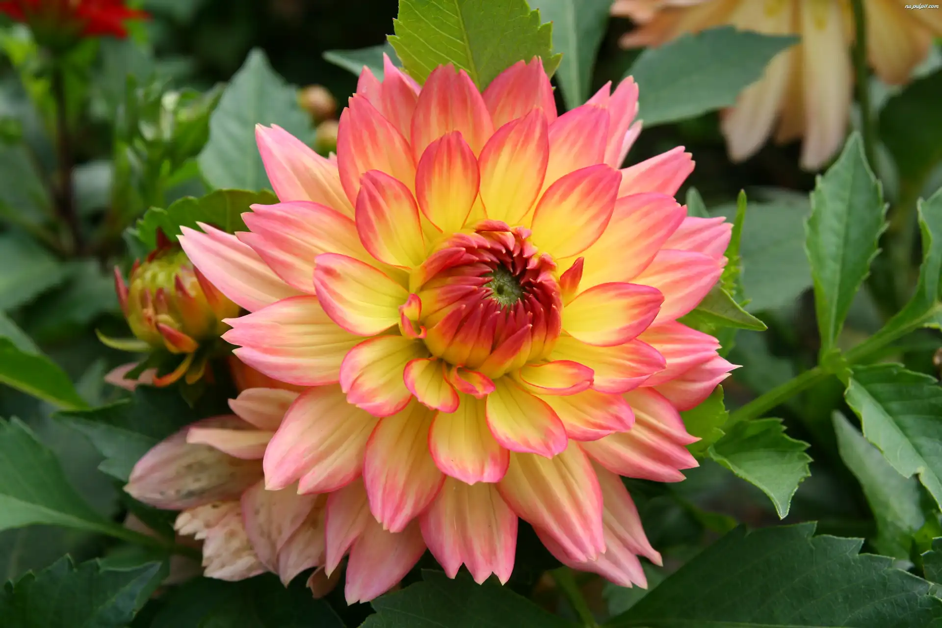 Liście, Dalia, Kwiat, Pąk
