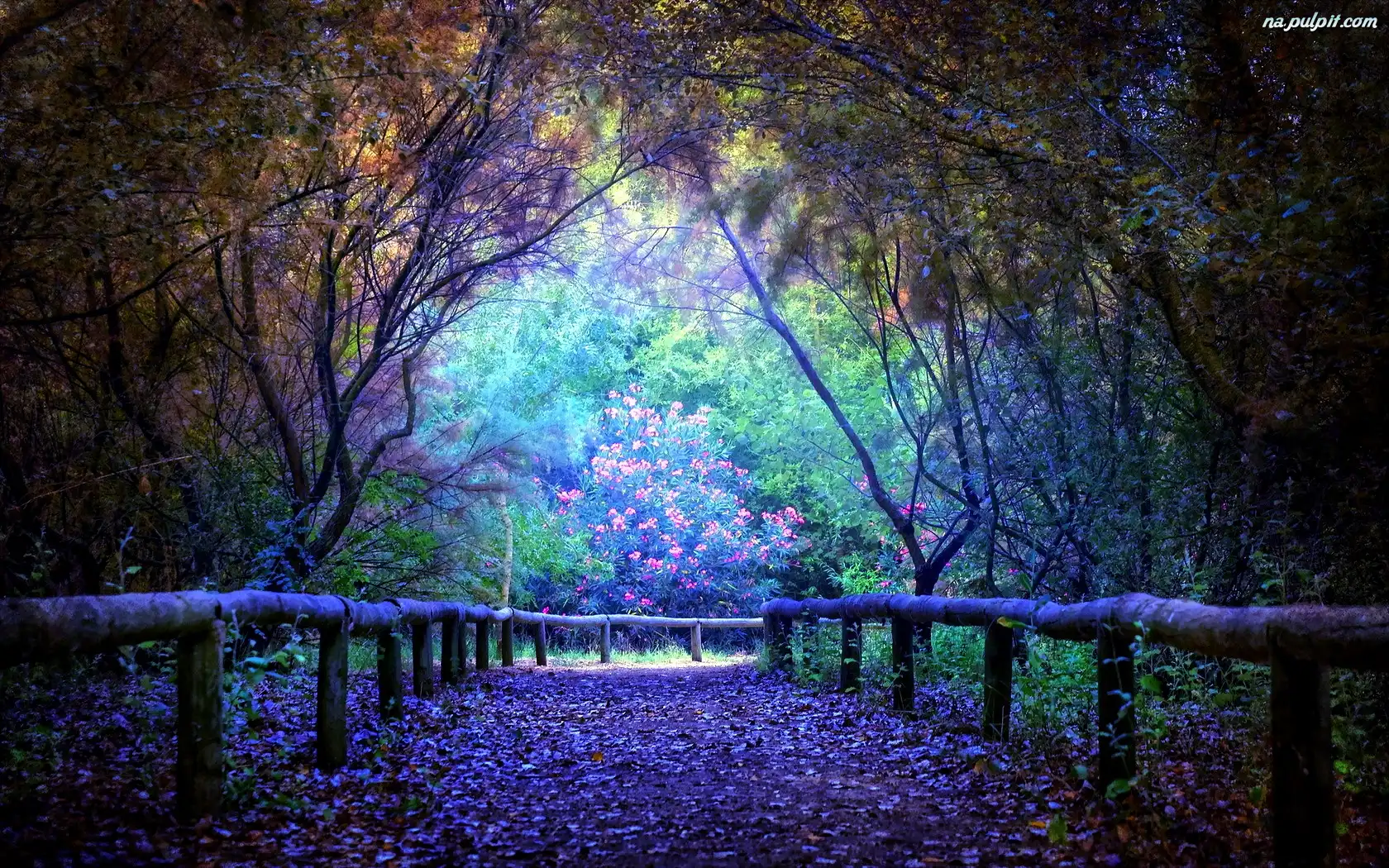 Liście, Droga, Las, Płotek Na Pulpit