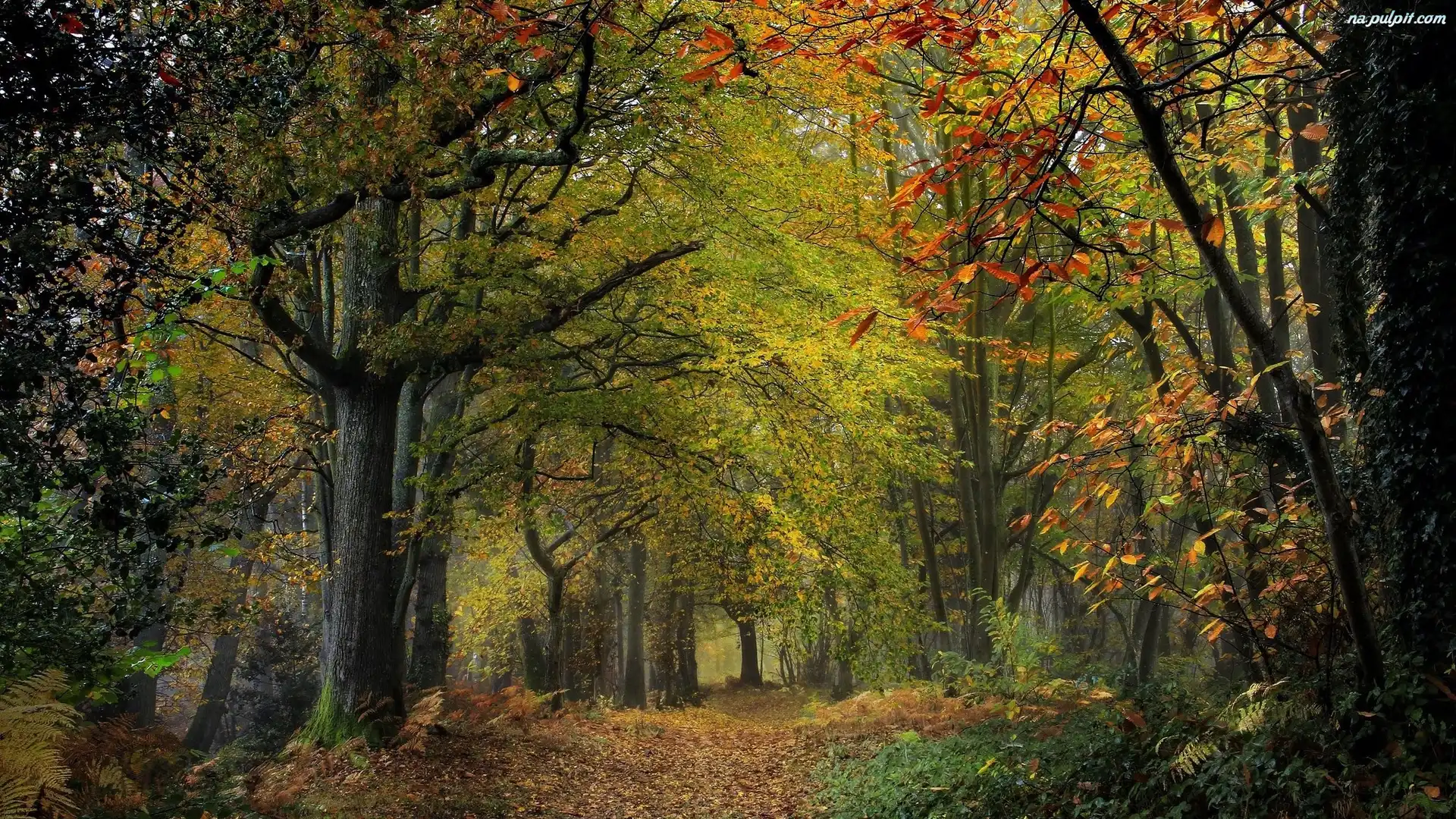 Liście, Paprocie, Drzewa, Las, Opadłe Na Pulpit