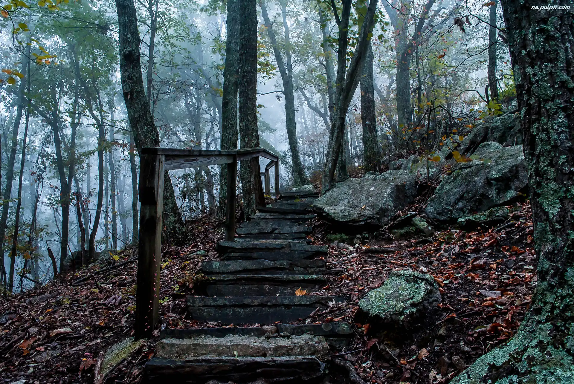 Liście, Schody, Las, Kamienie Na Pulpit