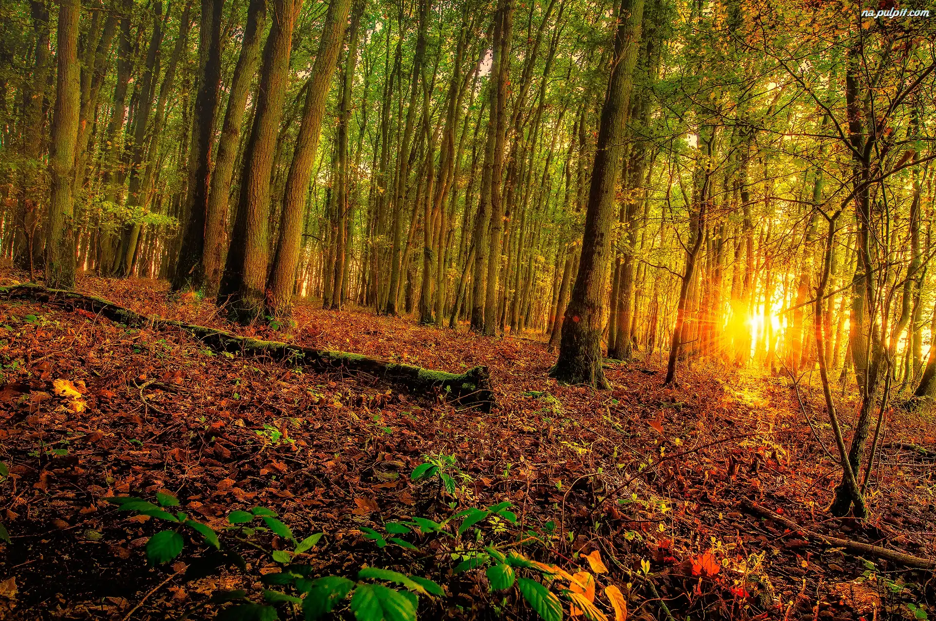 Liście, Promienie słońca, Las, Drzewa Na Pulpit