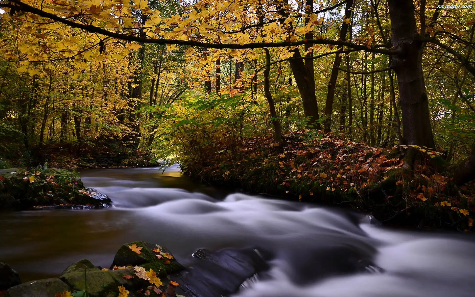 Liście, Strumień, Las, Jesień Na Pulpit