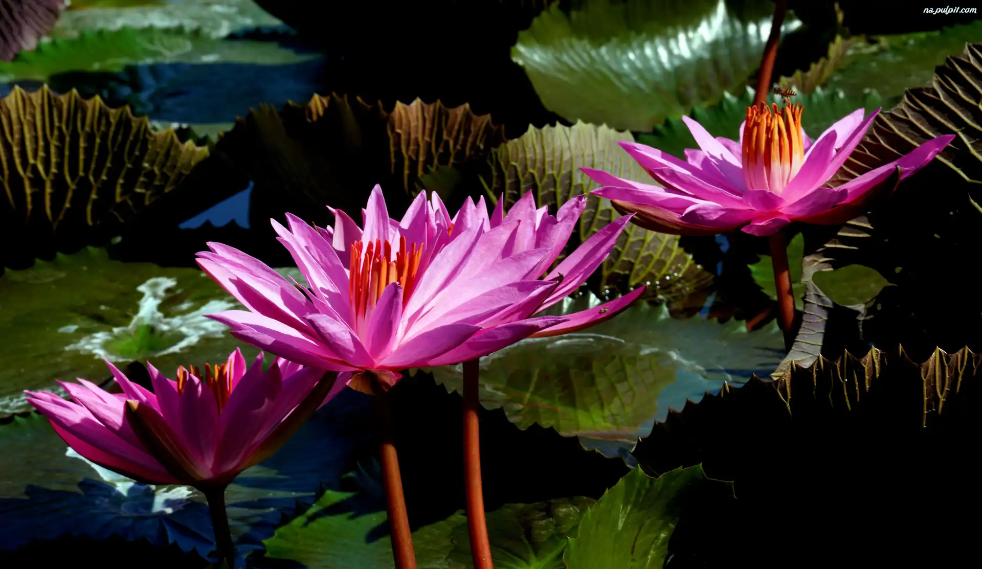 Liście, Rozwinięte, Różowe, Lilie wodne
