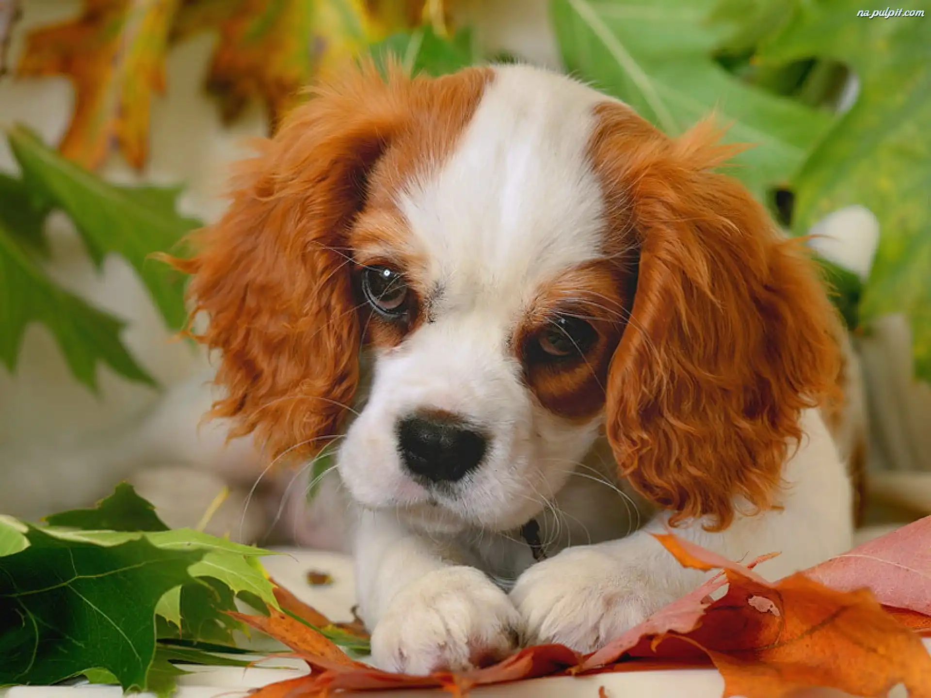 Liście, Psiak, Mały, Kolorowe Na Pulpit
