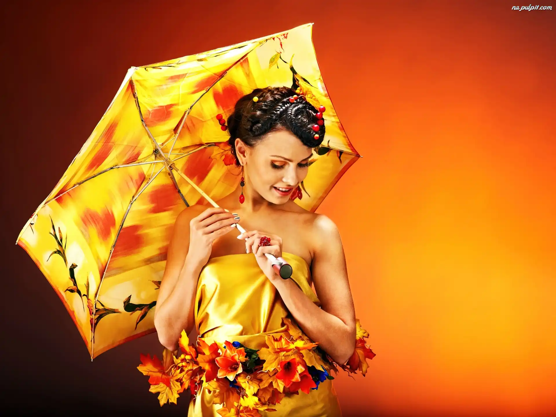 Liście, Jesienne, Parasol, Modelka, Kwiaty Na Pulpit