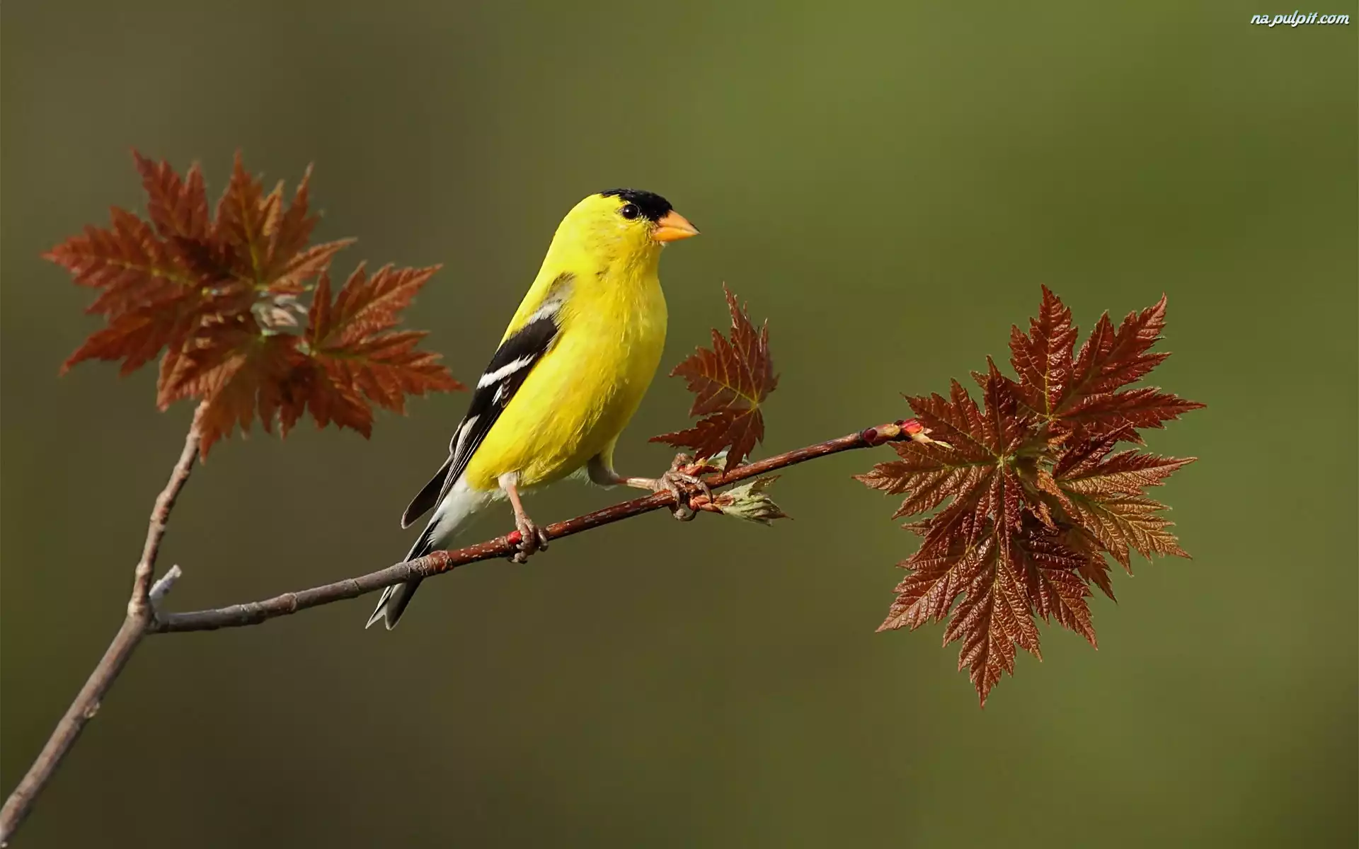 Liście, Gałązka, Ptaszek, Żółty, Brązowe Na Pulpit