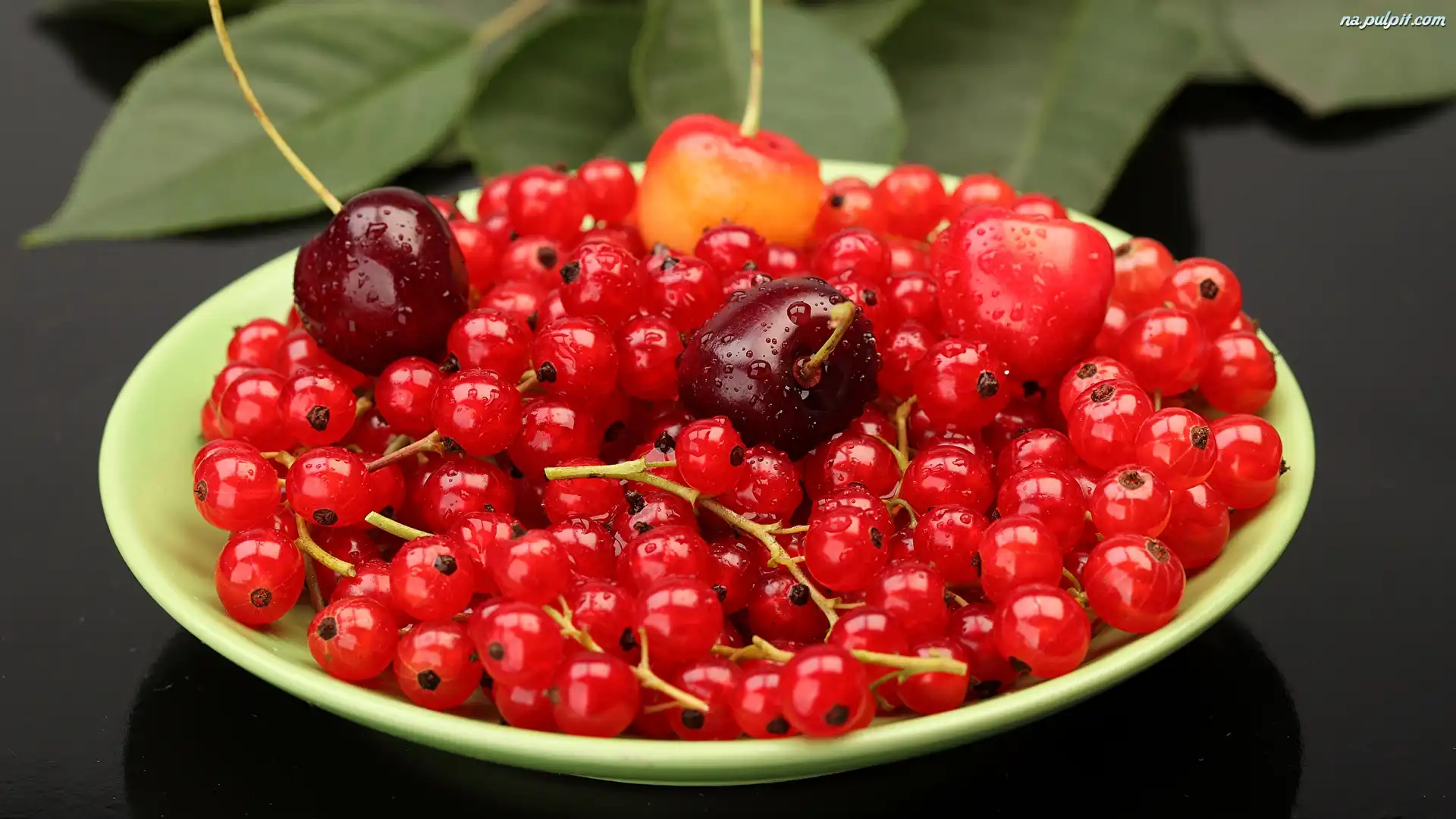 Liście, Czereśnie, Czerwona porzeczka, Owoce, Talerzyk Na Pulpit