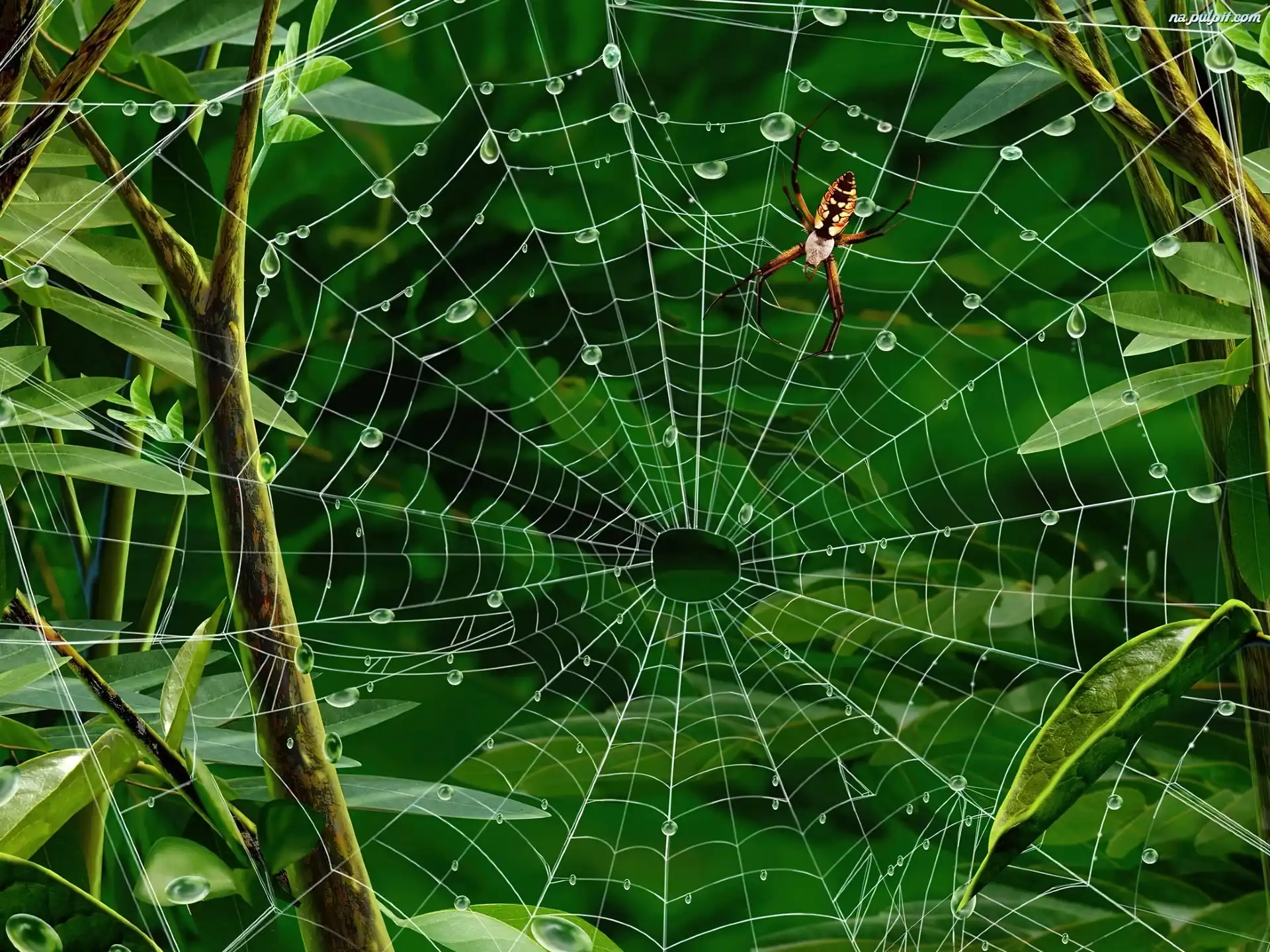 Liście, Pajęczyna, Pająk, Krzewy