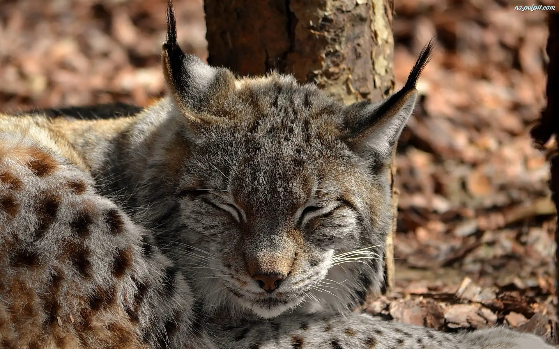 Liście, Ryś, Śpiący, Las Na Pulpit