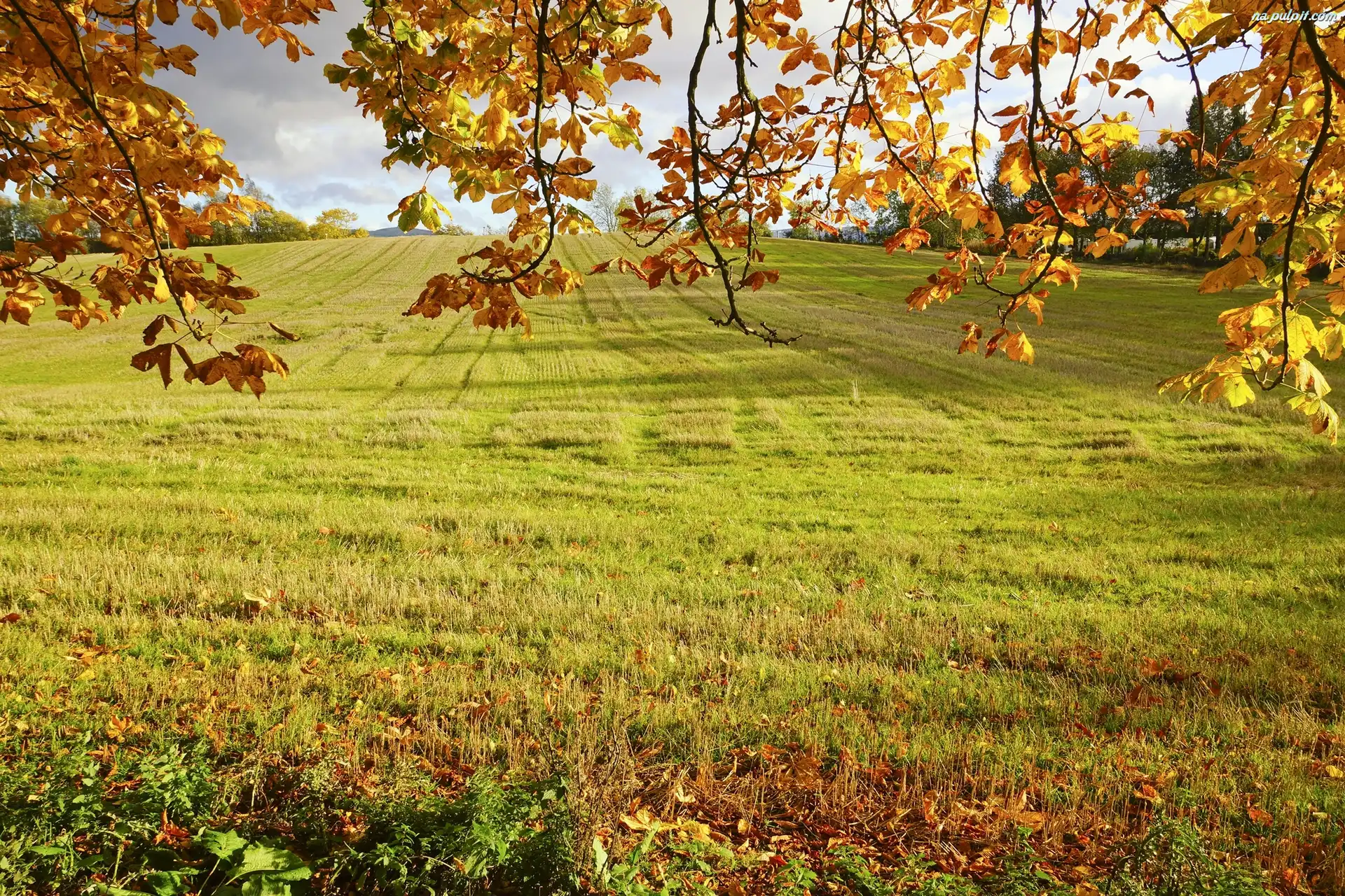 Liście, Łąka, Pole, Drzewo