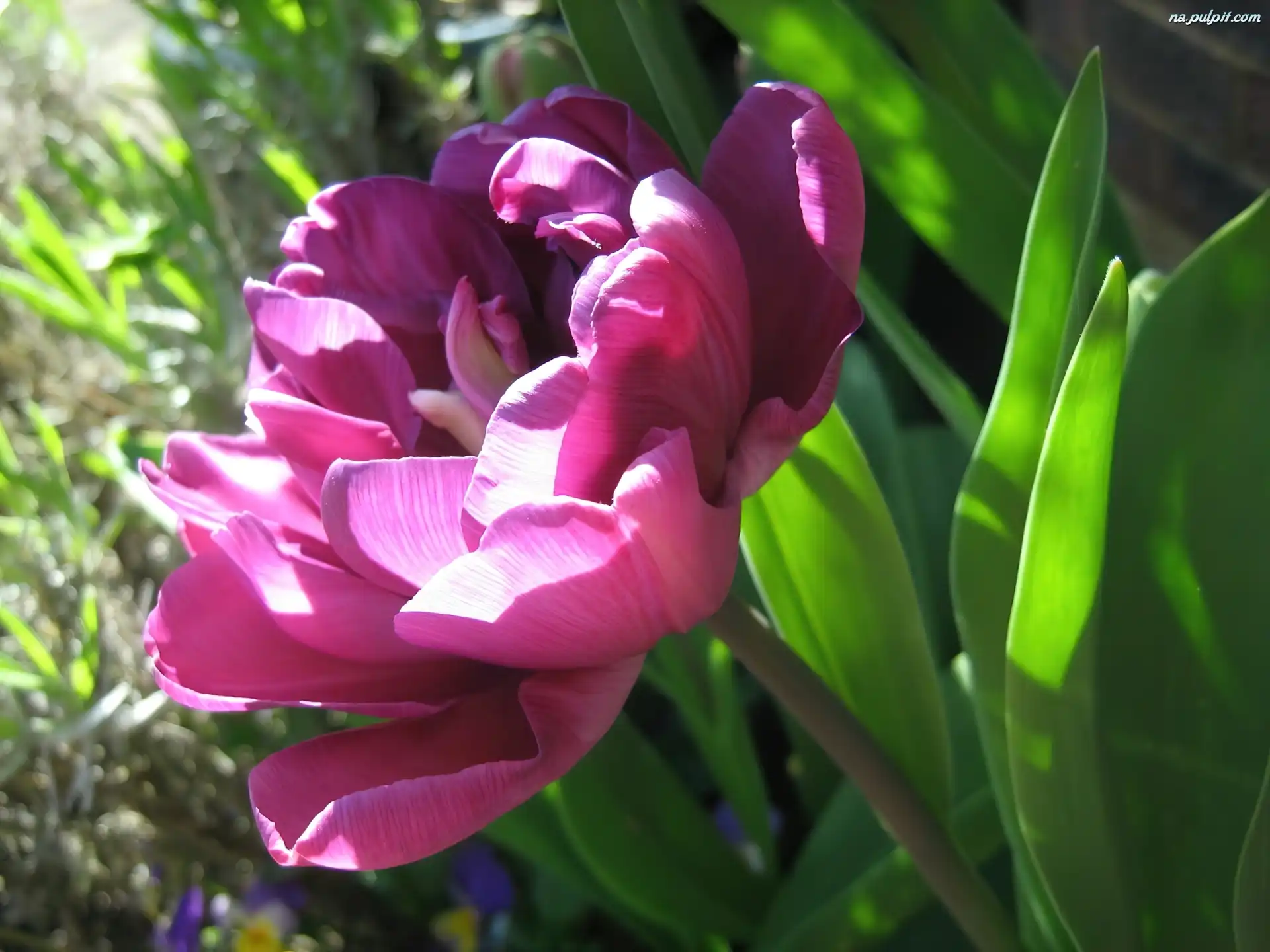 Liście, Pełny, Różowy, Tulipan Na Pulpit