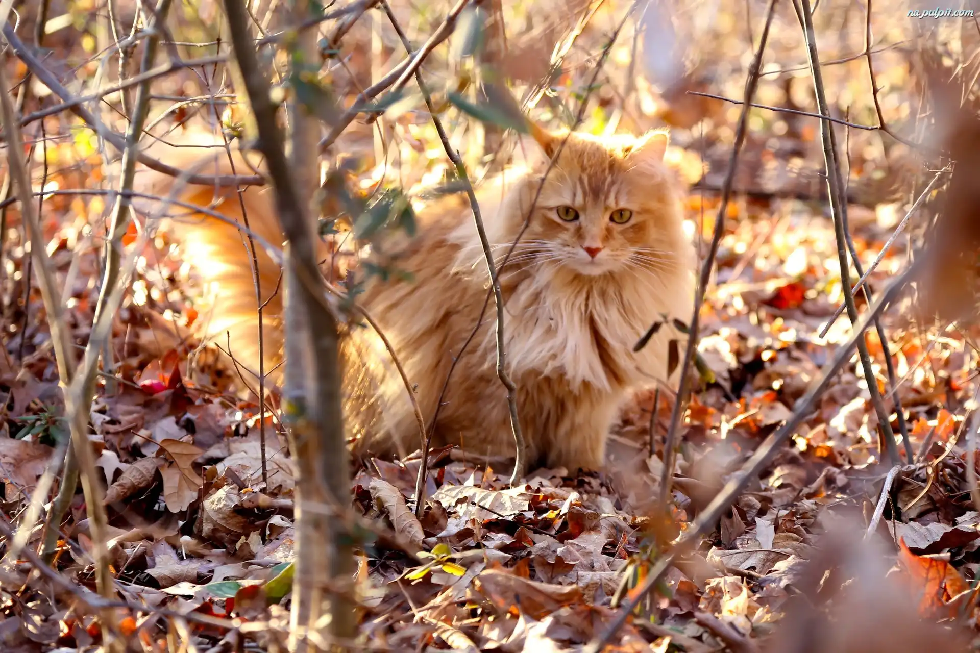Liście , Kot, Rudy, Jesienne Na Pulpit