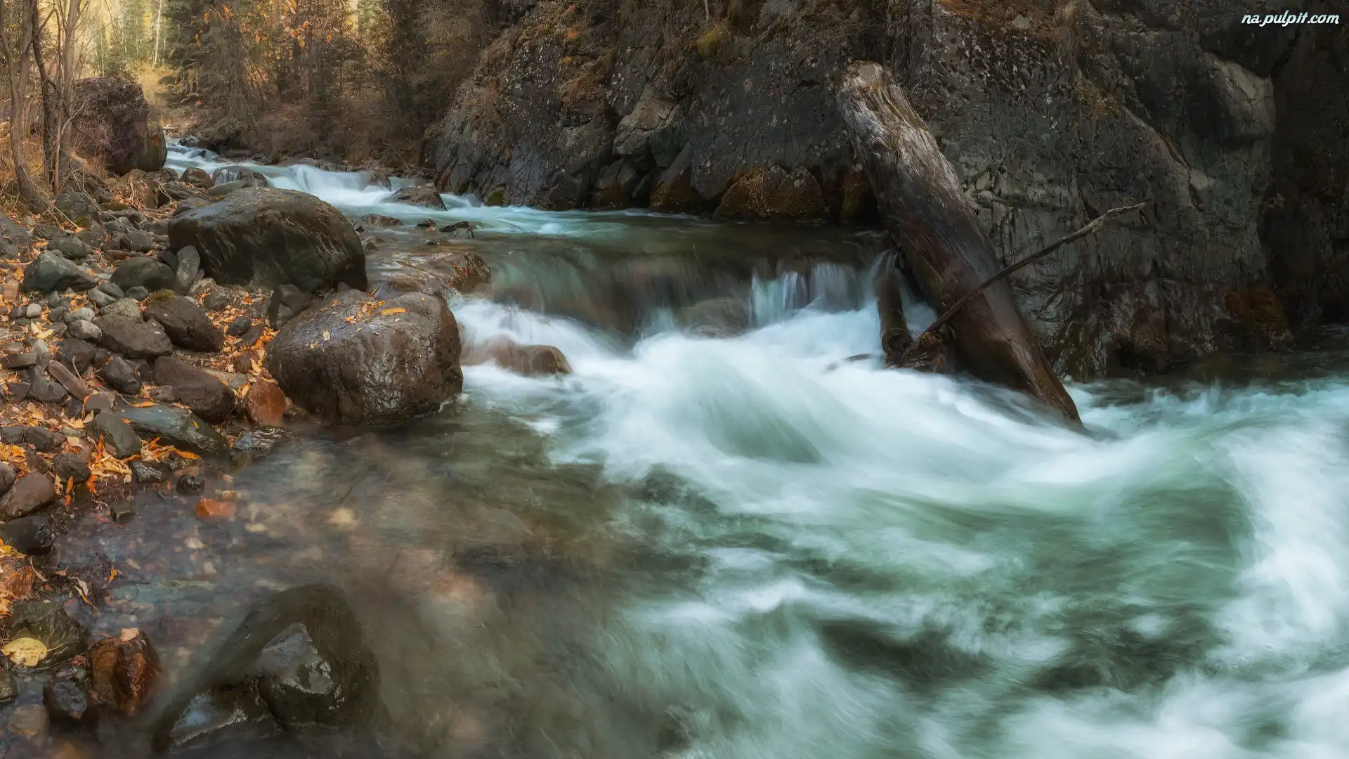 Liście, Drzewa, Las, Rzeka, Kamienie Na Pulpit