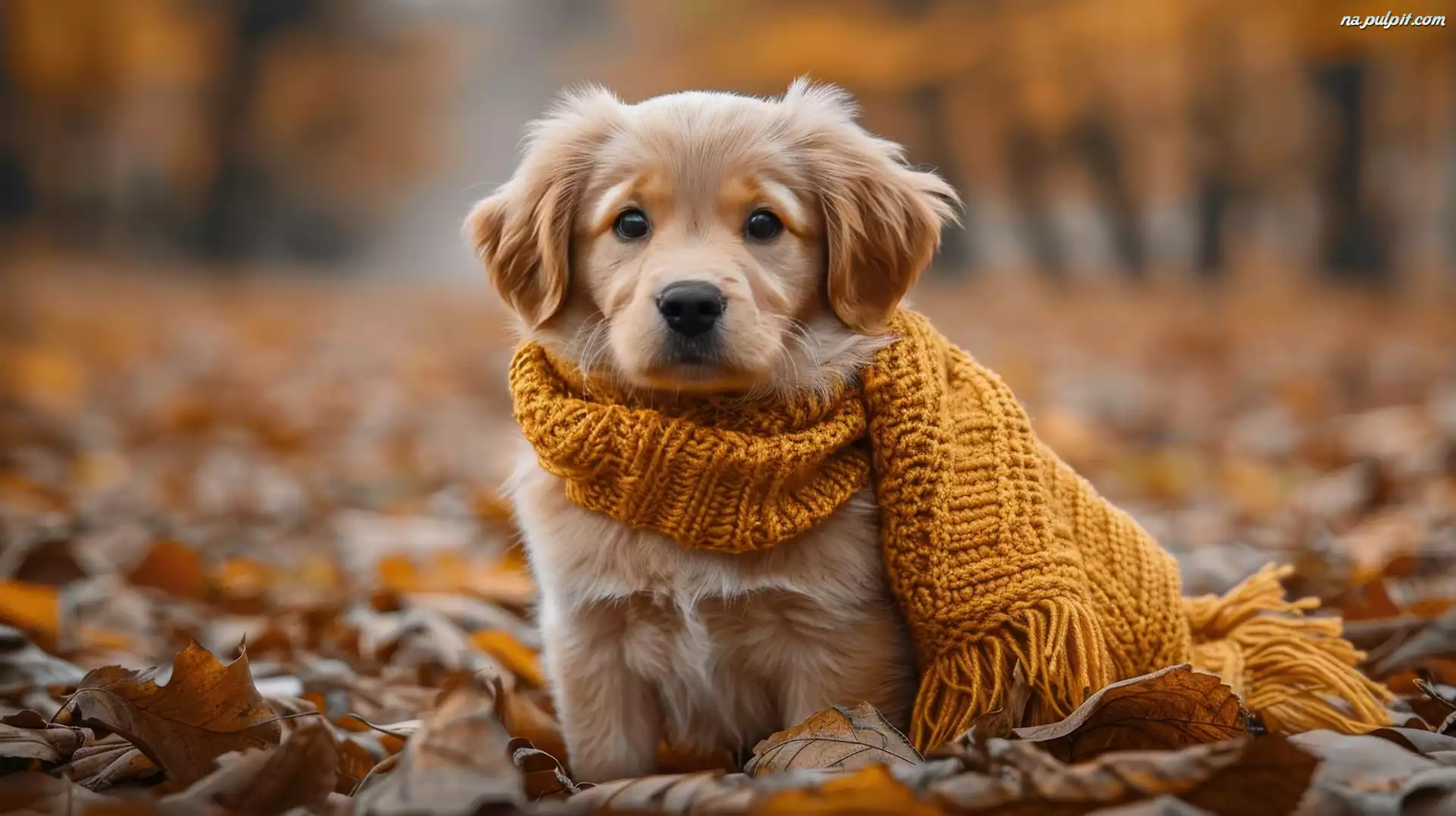 AI, Wełniany, Szalik, Pies, Szczeniak, Golden retriever, Liście Na Pulpit