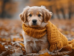 AI, Wełniany, Szalik, Pies, Szczeniak, Golden retriever, Liście