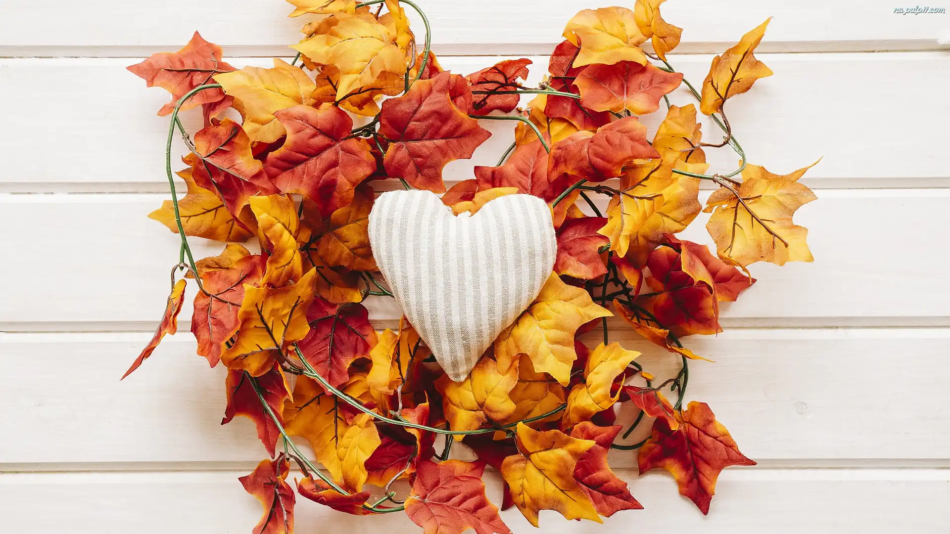 Liście, Deski, Kompozycja, Klonu, Sztuczne, Serce Na Pulpit