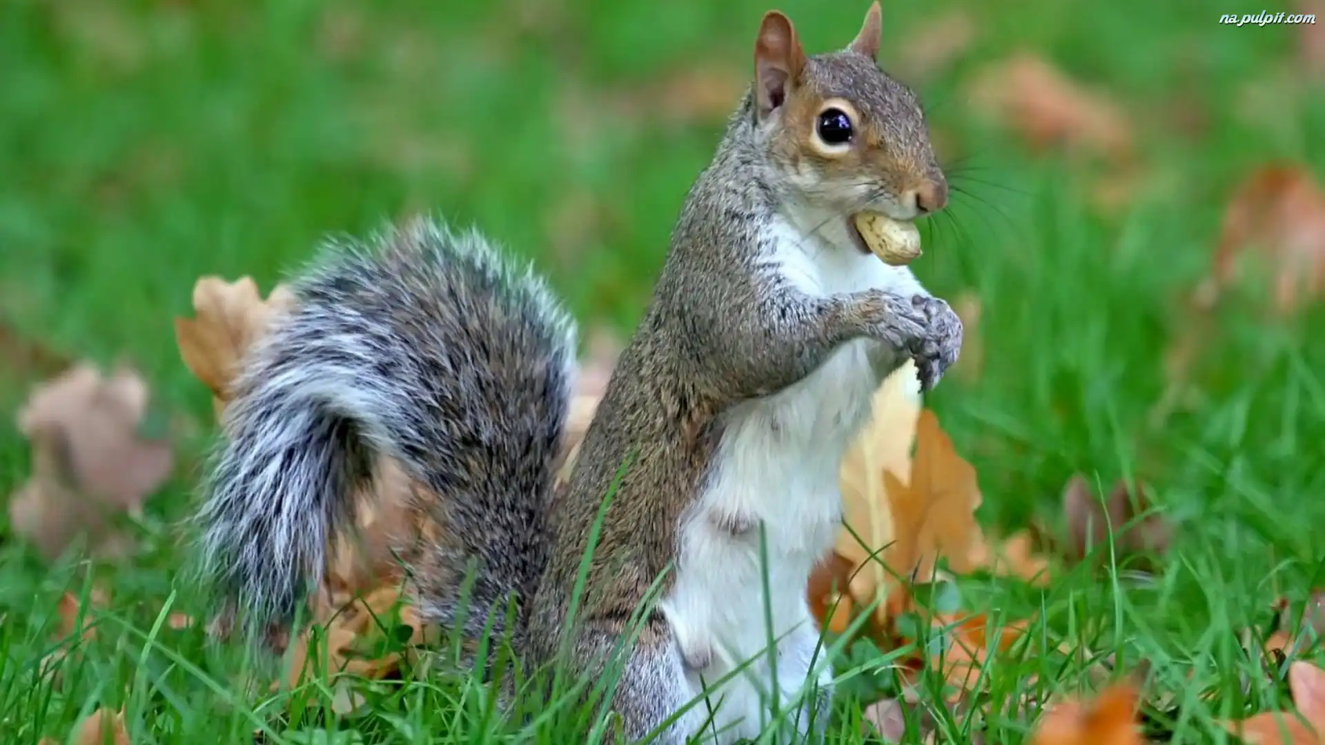 Liście, Orzeszek, Wiewiórka, Trawa Na Pulpit