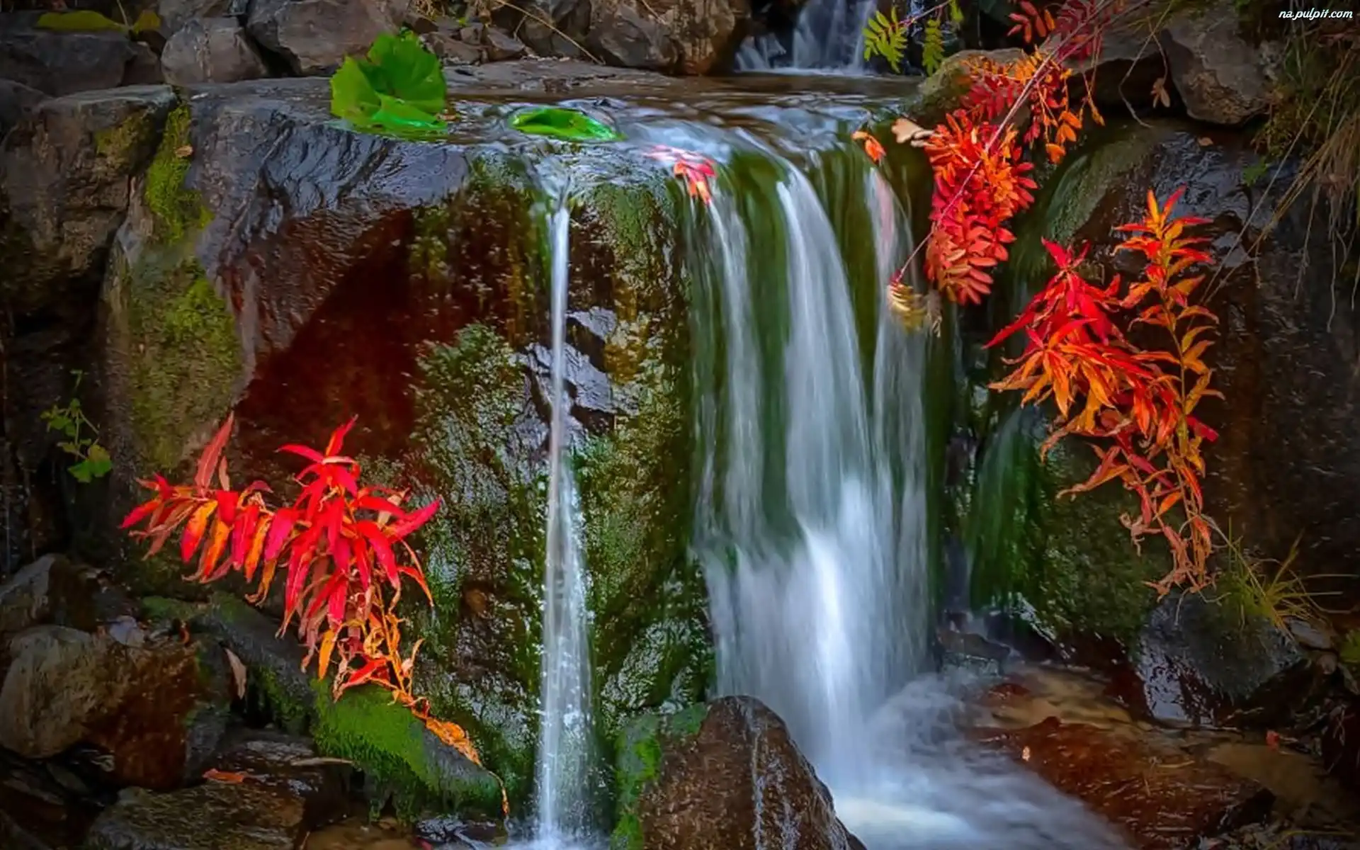 Liście, Skały, Wodospad, Jesienne Na Pulpit