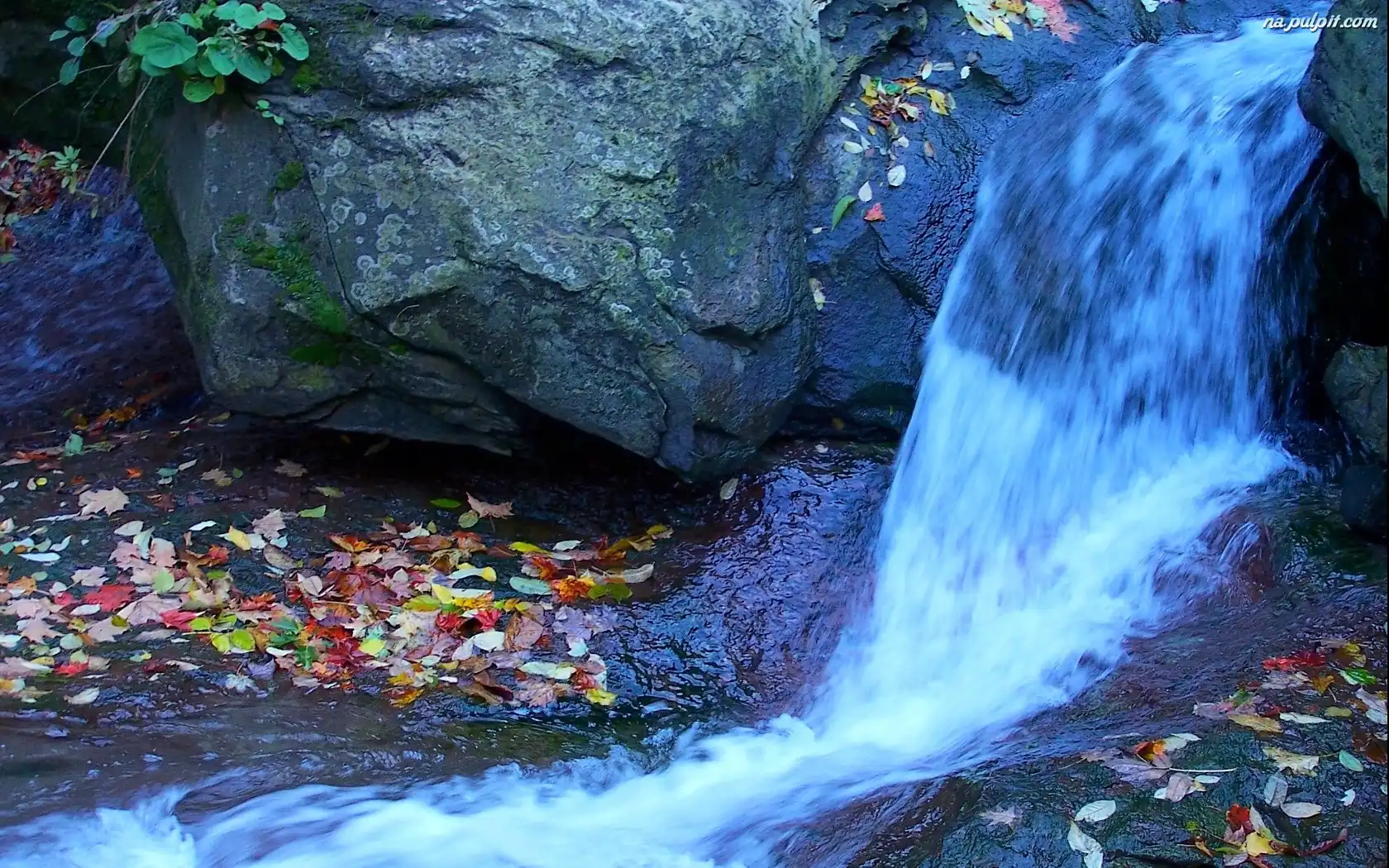 Liście, Skały, Wodospad, Kolorowe Na Pulpit