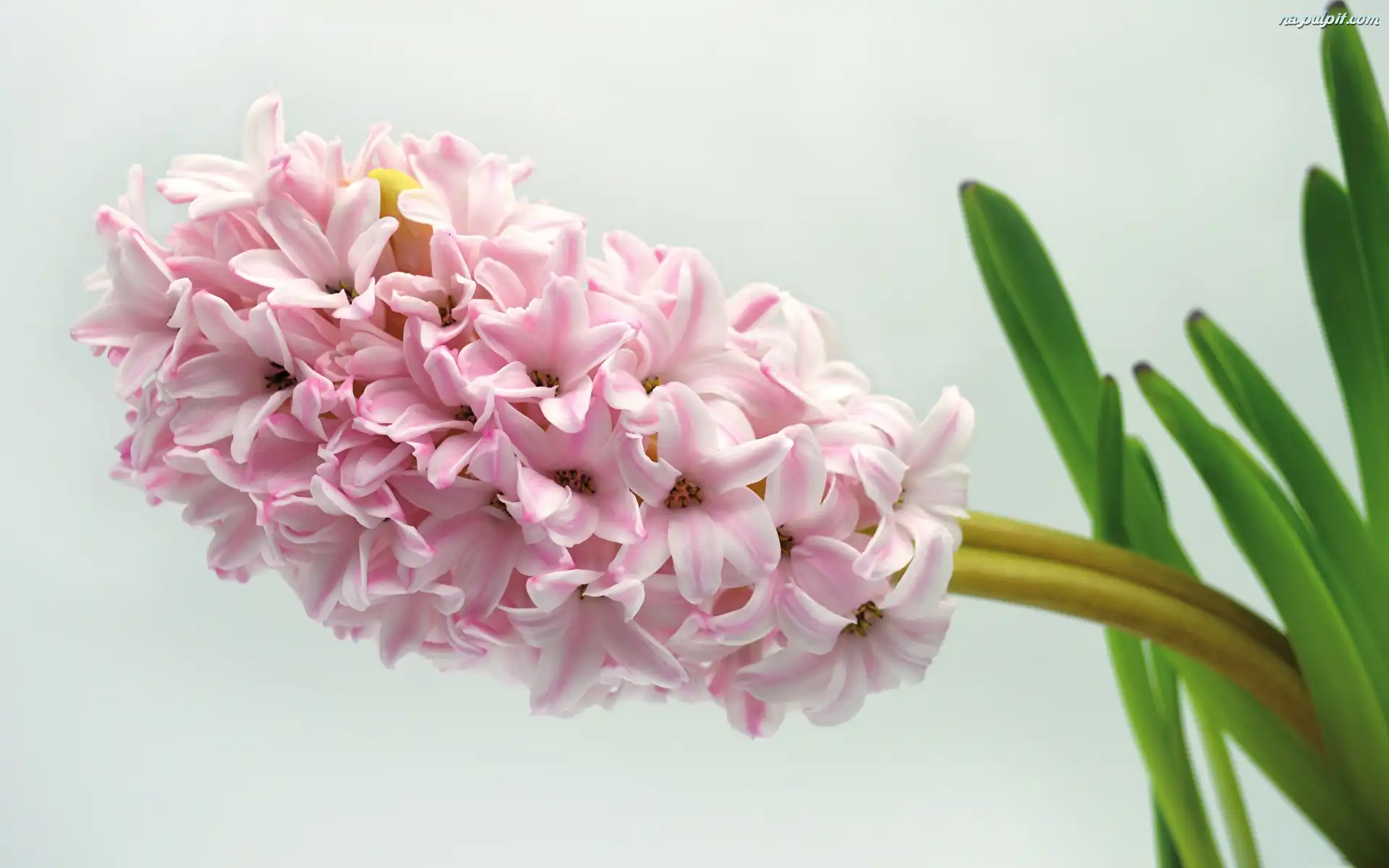 Łodyga, Kwiat, Różowy, Liście, Hiacynt, Zbliżenie